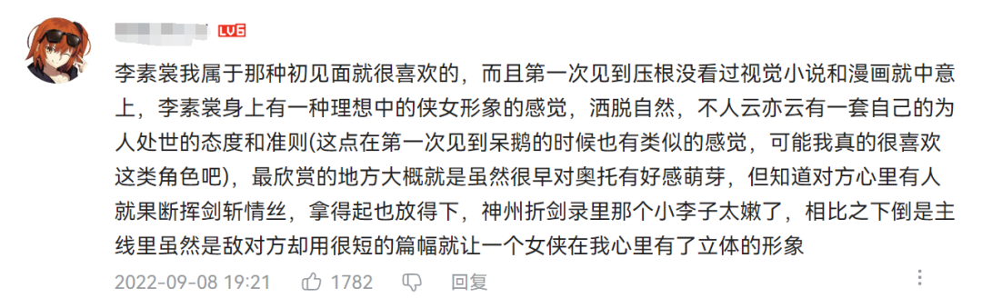 首先,李素裳的人设有内容基础,只是暂时没有在游戏内展现出来。李素裳是官方衍生作品《神州折剑录》的女主,这部作品详细介绍了其人设和背景故事,因此官方的挑战在于如何通过内容释放,让玩家喜欢上她。