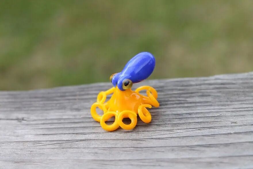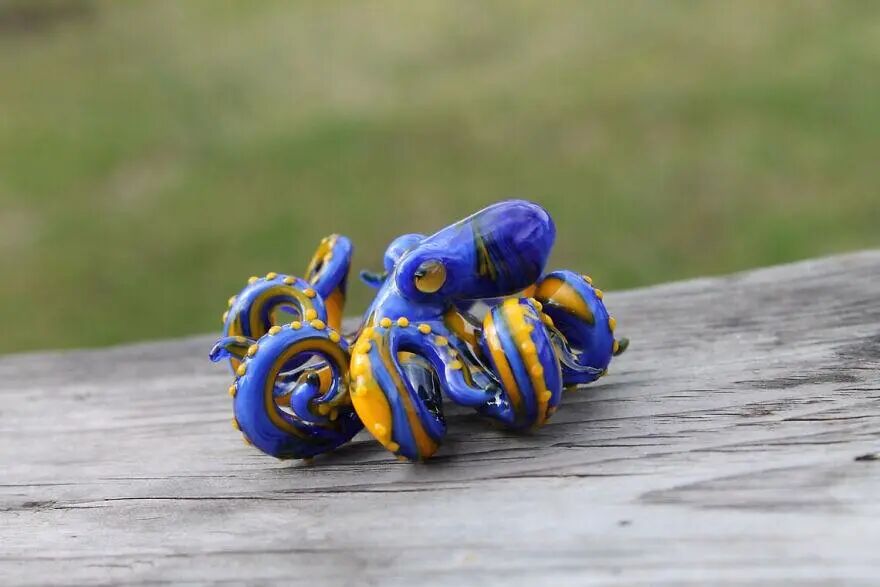 来自乌克兰的美女艺术家尼基塔·德拉丘克却不讨厌这些外表丑丑的小东西,这位手吹玻璃的高手,所吹制的不是什么精美的花瓶或花朵,而是半透明的章鱼、条纹蜘蛛等无脊椎动物,除了外形逼真之外,艺术家还赋予了这些小东西丰富的色彩,被她做成艺术品的蜘蛛、章鱼,想必你想讨厌也讨厌不起了,因为,它们的身价暴增到了你想买都买不起的价格。