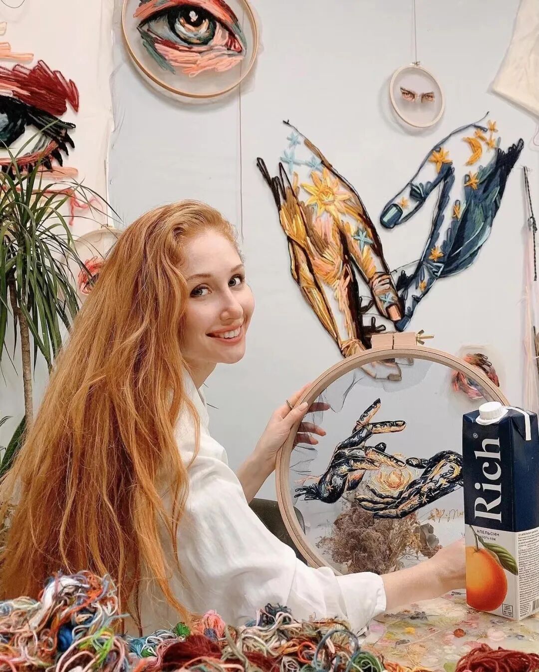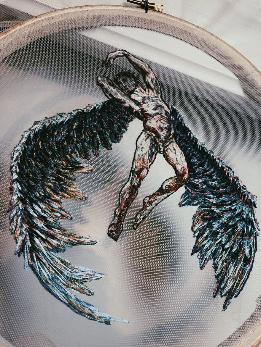 Katerina Marchenko擅于用色彩斑斓的棉线刺绣出栩栩如生、灵动唯美的作品。她将自己的创造力注入刺绣中,于她之手,绣线像是在薄纱之上翩跹起舞,富有意境。