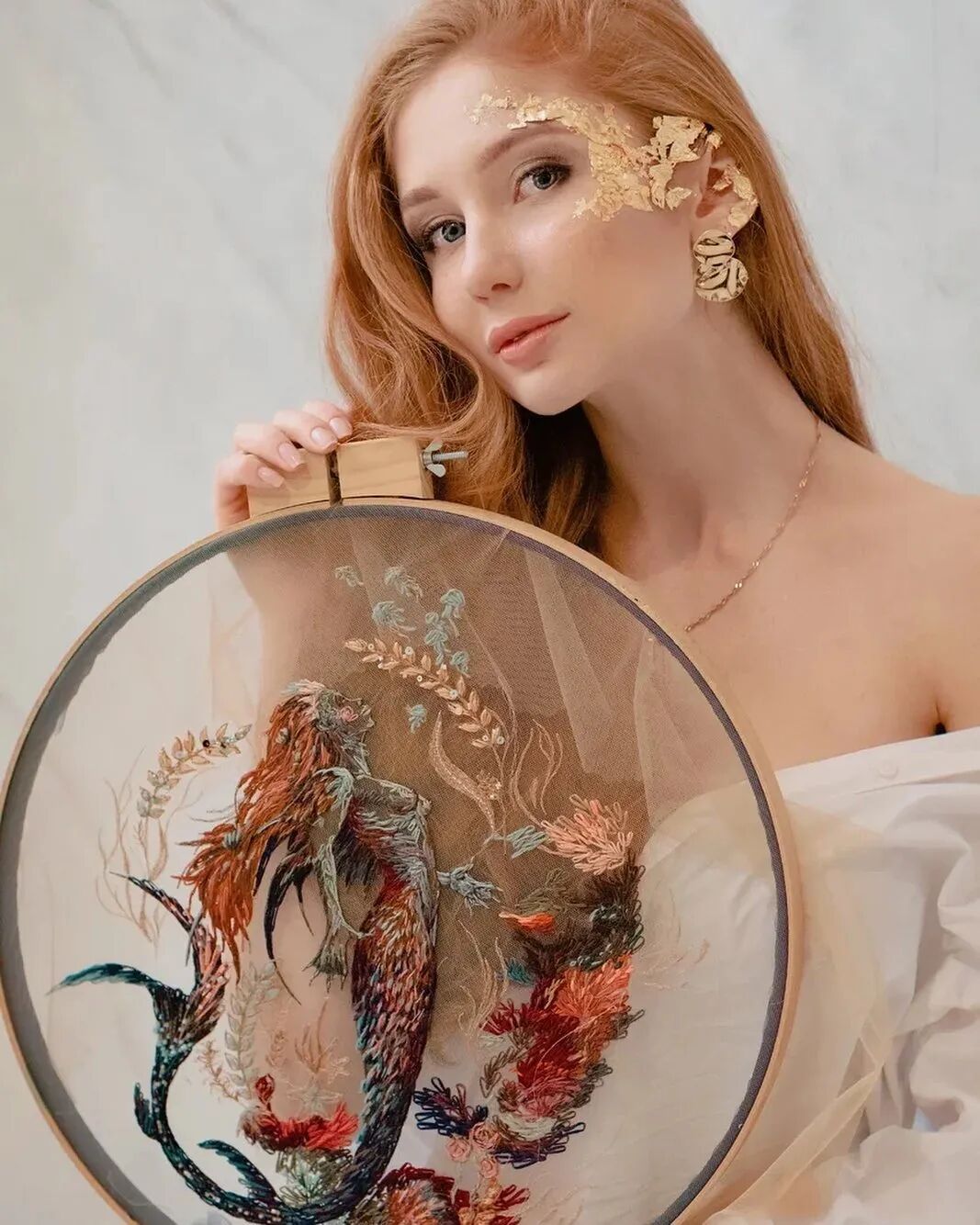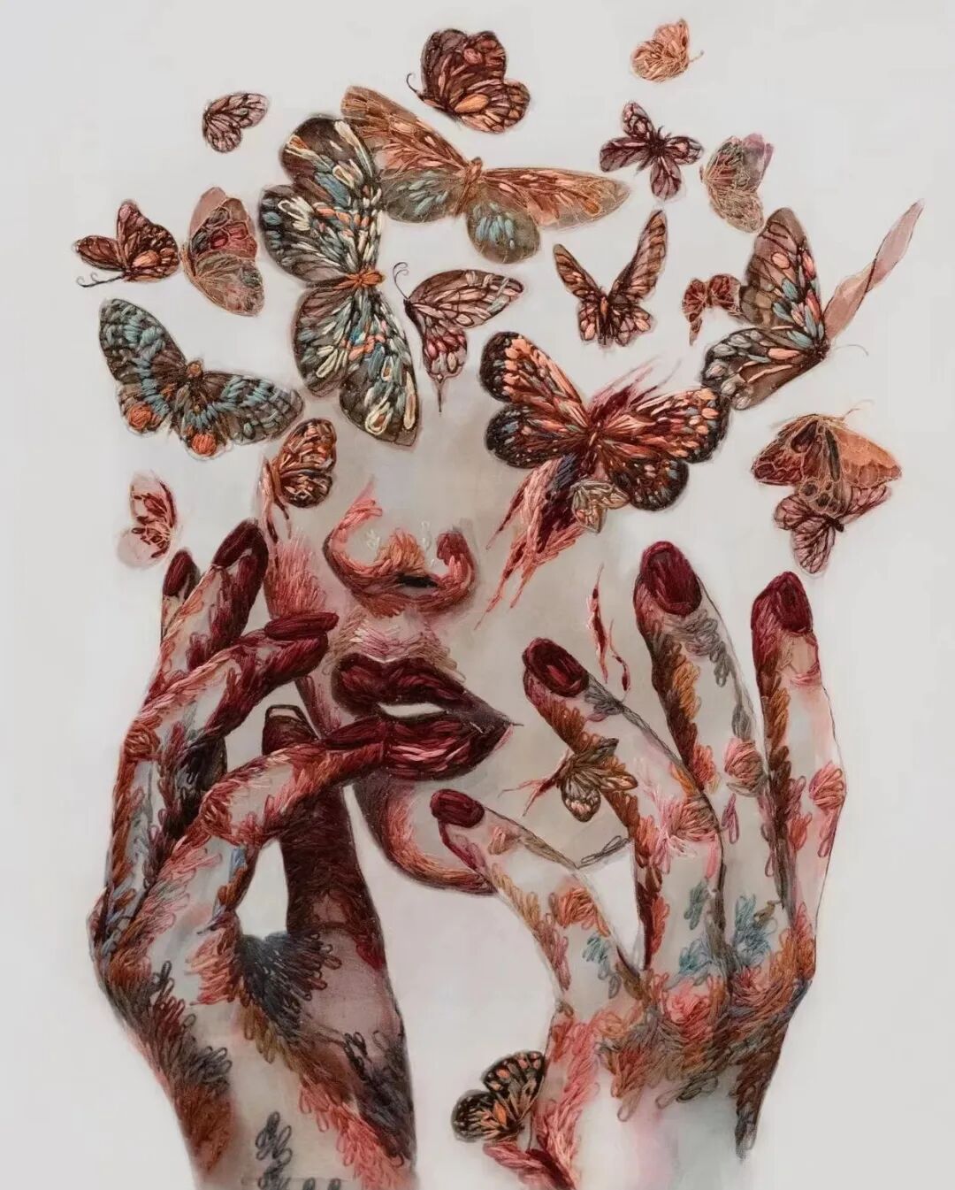 Katerina Marchenko是一位来自莫斯科的刺绣艺术家,她将自己的创造力注入刺绣中。受到时尚和高级时装的启发,她在薄纱上手工缝制了生动的彩色线,创作出 3D 效果的艺术品,有迷人的刺绣肖像、动物和其他时装设计的图像。