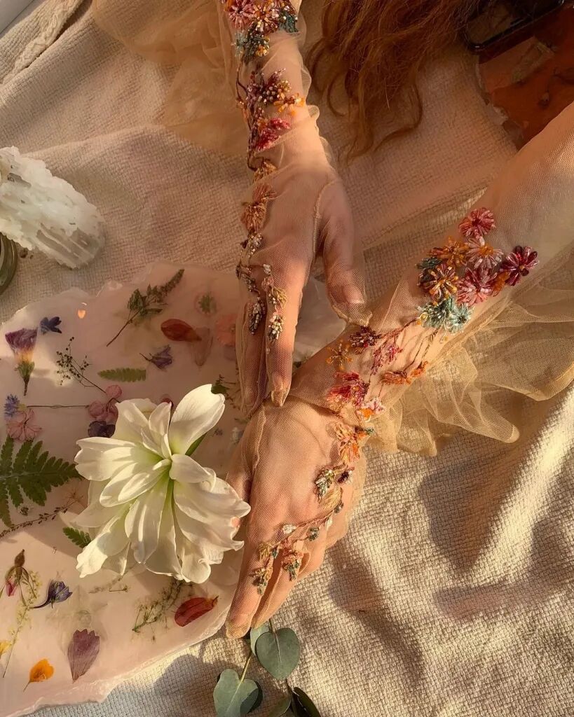 她说,“我喜欢与薄纱一起工作,因为它是一种透明的织物,可以使绣花在视觉上更加蓬松…我被鲜艳的饱和色所吸引,因此我经常尝试将它们与和谐的色彩融合在一起,但尽量不要使其过于浮夸。”