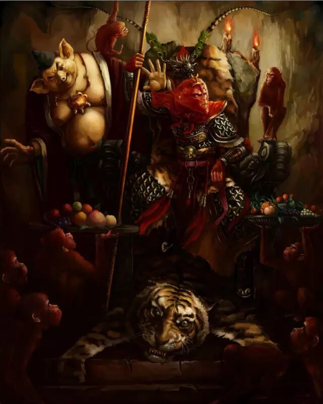 《西游记》曾被老艺术家刘继卣以工笔年画的形式,火遍大江南北。而如今,新锐艺术家张墨一以油画为我们展开了一个更为狰狞魔幻的西天取经路。