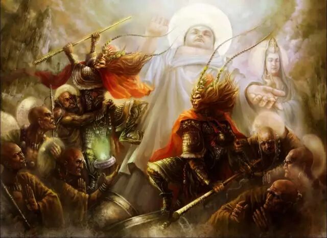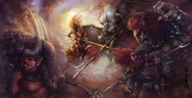 李天王即调四大天王与二十八宿,一路出师来斗。大圣也公然不惧,调出独角鬼王、七十二洞妖王与四个健将,就于洞门外列成阵势。你看这场混战,好惊人也!
