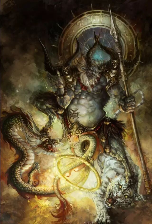 却说孙大圣同八戒、沙僧出城头,觌面相迎,见那伙妖精都是些杂毛狮子:黄狮精在前引领,狻猊狮、抟象狮在左,白泽狮、伏狸狮在右,猱狮、雪狮在后,中间却是一个九头狮子。