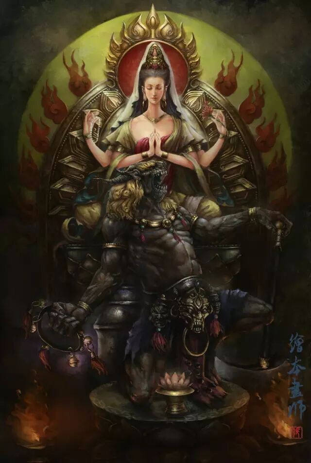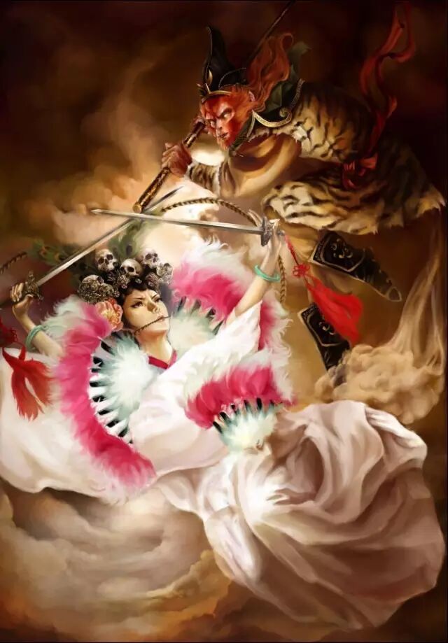 这妖精见没了行者。走近前,睁圆眼,对菩萨道:“你是孙行者请来的救兵么?”菩萨不答应。妖王拈转长枪,喝道:“咄!你是孙行者请来的救兵么?” 菩萨也不答应。妖精望菩萨劈心刺一枪来。那菩萨化道金光,径走上九霄空内。