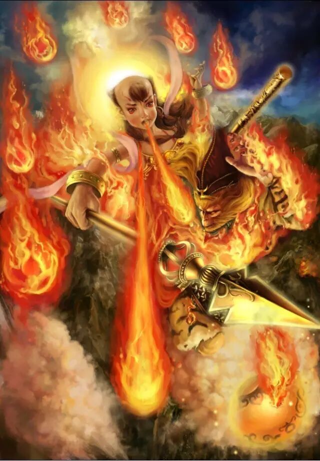 哪吒喝道:“泼妖猴!岂不认得我?我乃托塔天王三太子哪吒是也。今奉玉帝钦差,至此捉你。”