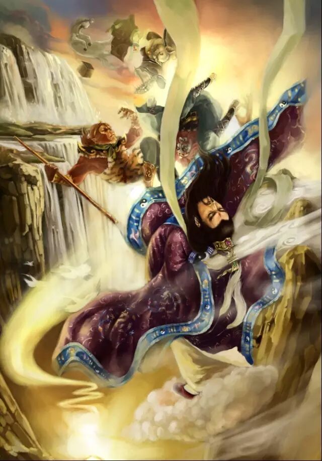 卷帘将,天蓬帅,各显神通真可爱。那个降妖宝杖着头轮,这个九齿钉钯随手快。跃浪振山川,推波昏世界。凶如太岁撞幢幡,恶似丧门掀宝盖。这一个赤心凛凛保唐僧,那一个犯罪滔滔为水怪。