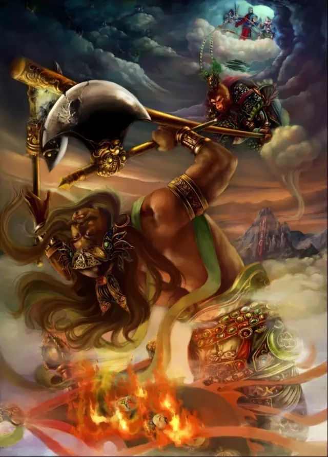 巨灵神抵敌他不住,被猴王劈头一棒,慌忙将斧架隔,嗙的一声,把个斧柄打做两截,急撤身败阵逃生。