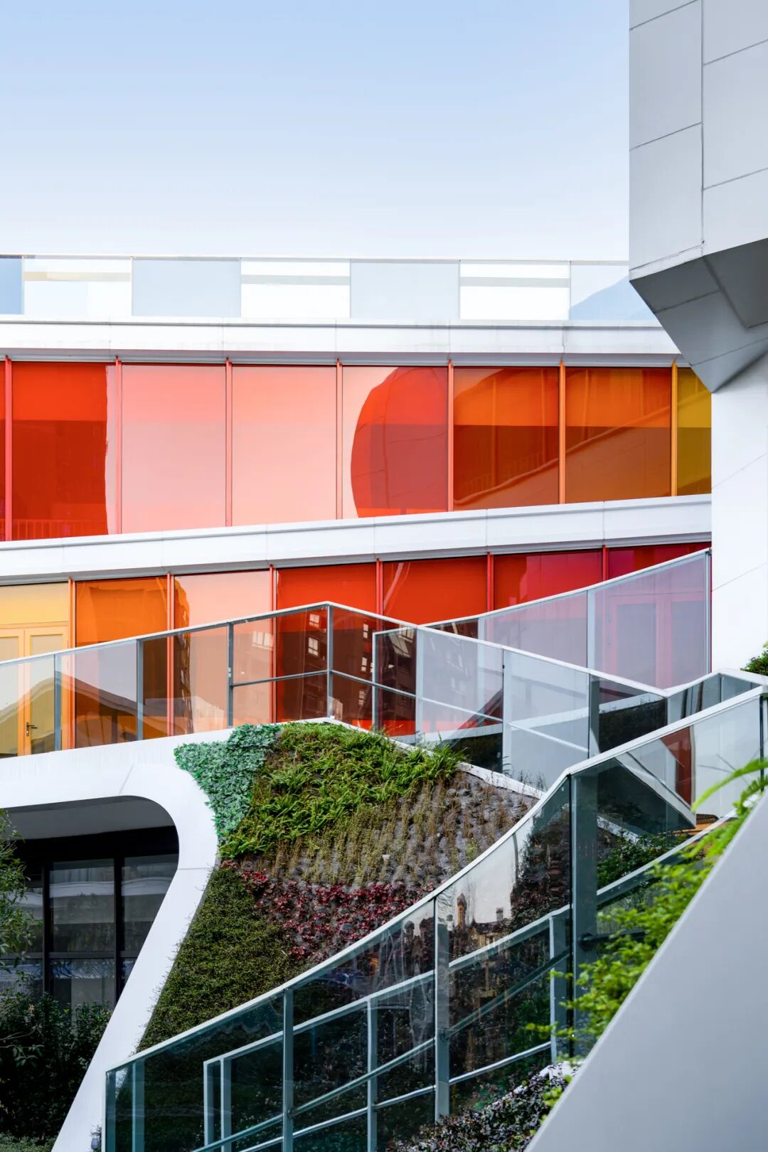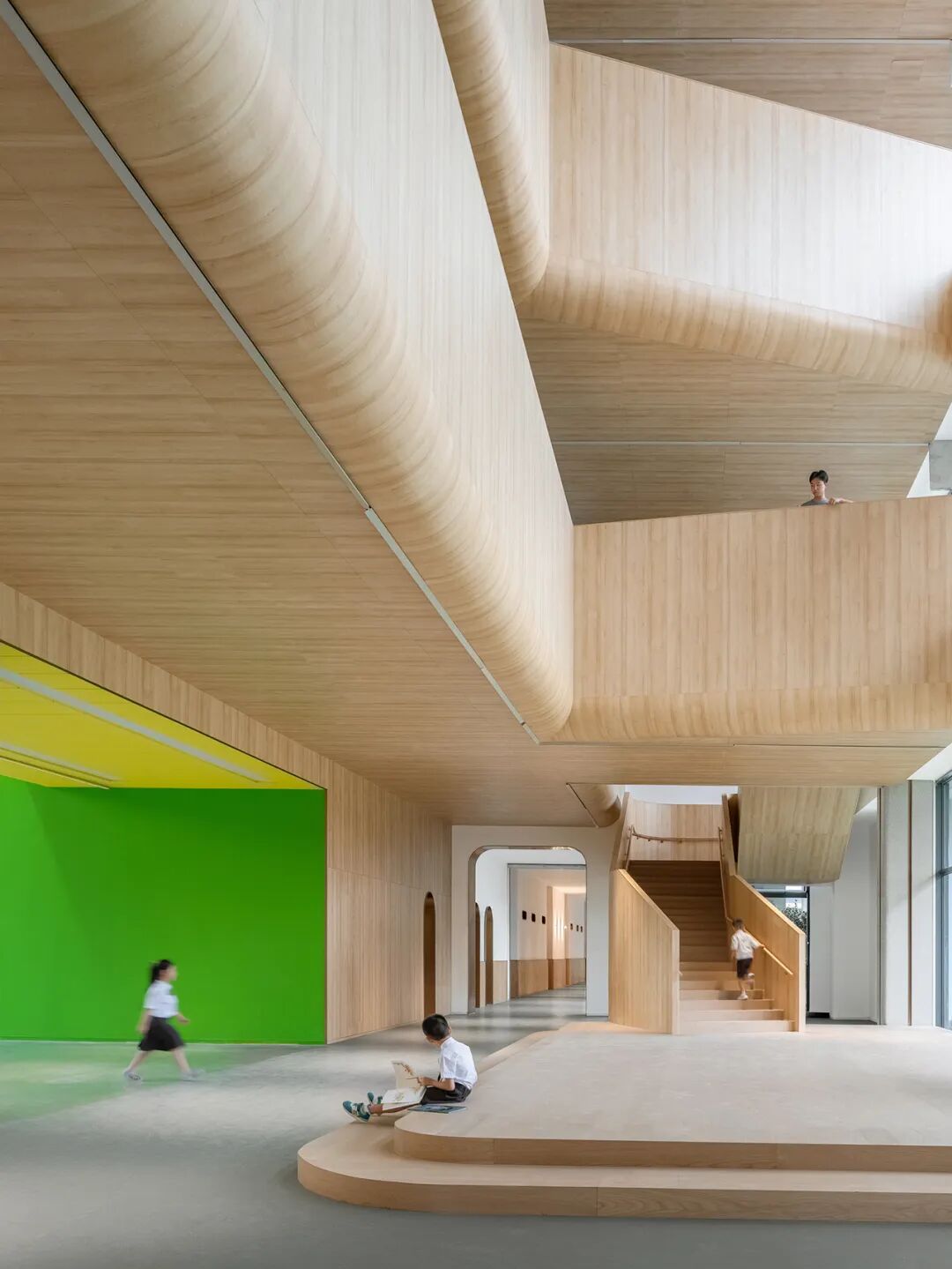 其室内设计延续了建筑设计“绿野仙踪'的主题,以四个童话章节划分和连接内部空间与流线,以场景化的方式塑造个性化的教学与玩耍空间。