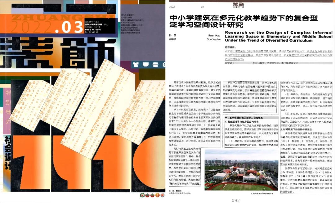 《中小学建筑在多元化教学趋势下的复合型泛学习空间设计研究》发表于《装饰》2022.03期