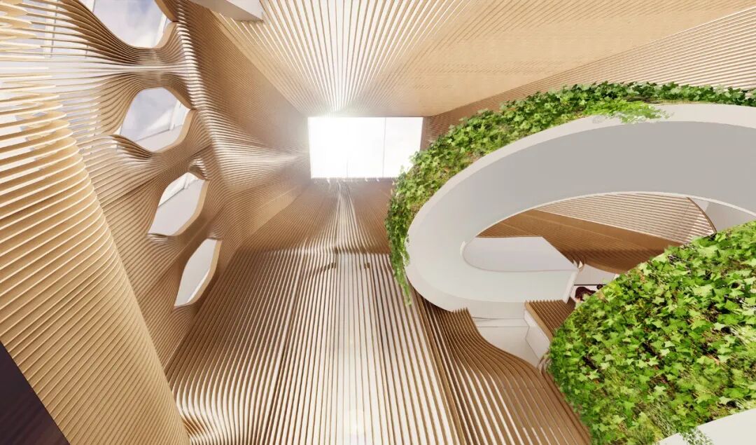 The interior design for this green and low carbon based super highrise building complex integreates with the history of Baoye Group, taking "folding century, low-carbon future" as the concept. The space unfolds the history of green architecture into each floor, forming the lobby and atrium space with different low-carbon technology orientations.