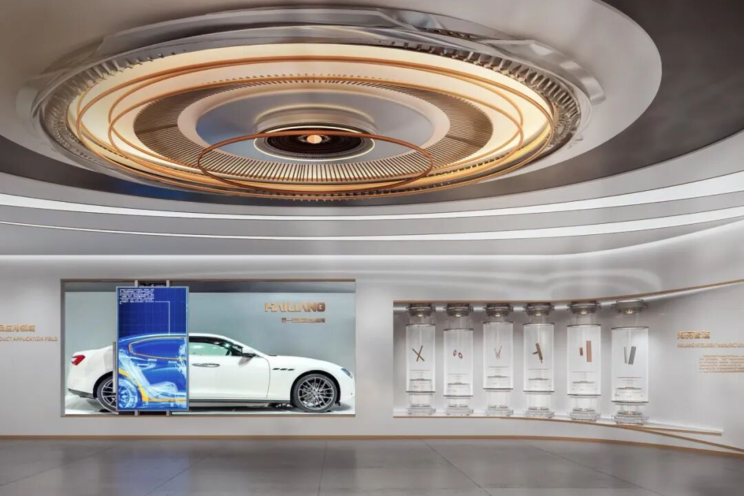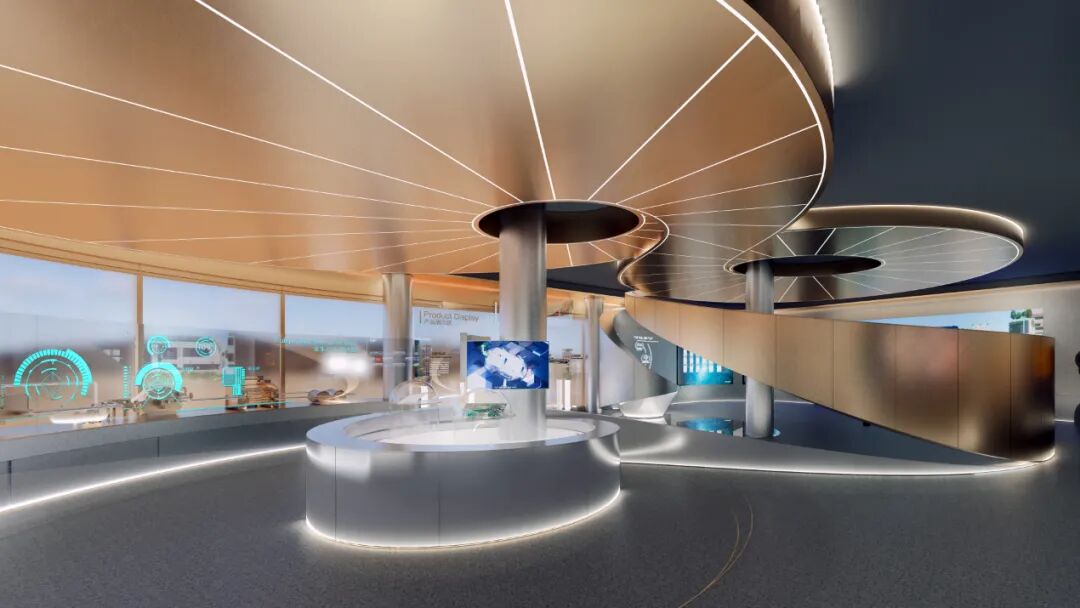 The exhibition center design extracts the concept of "All Rivers into Sea" from its corporate culture, and uses wavelike curve elements throughout the space and multimedia content to create an immersive and interactive exhibition center with spatial variability in the future.