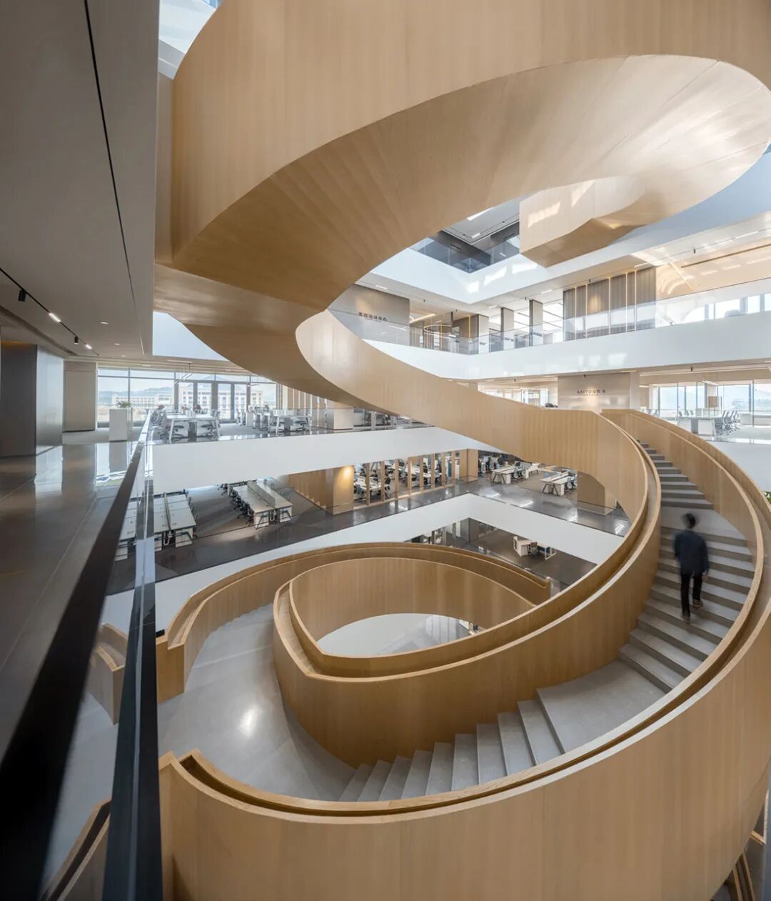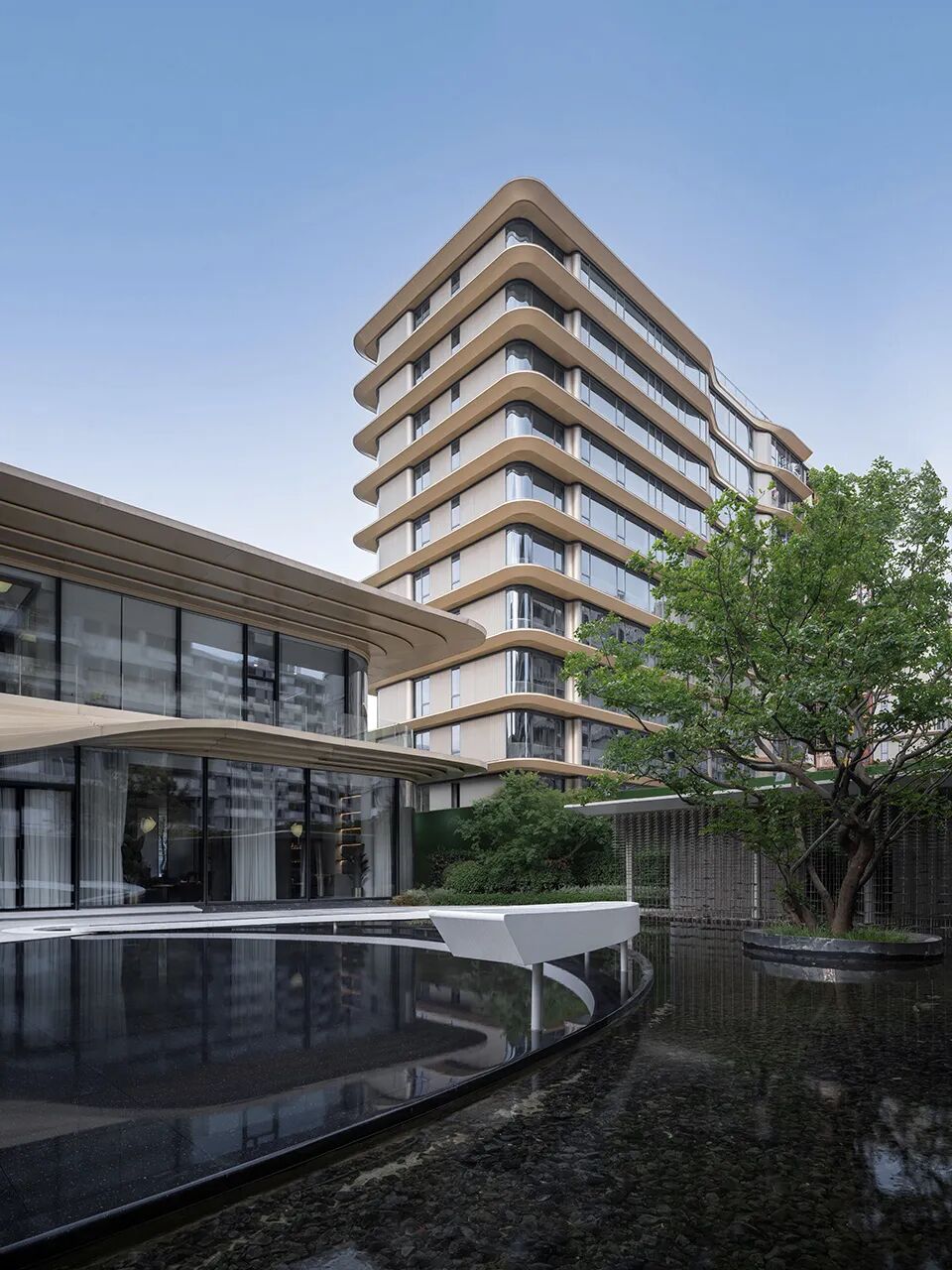 This massive and iconic architecture is located at the edge of downtown Hangzhou. Its diagonal cut in massing faces the West Lake and responses to its extremely complex surrounding environment, and the facade is like book pages being gently opened.