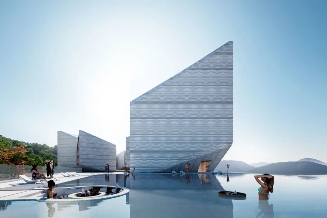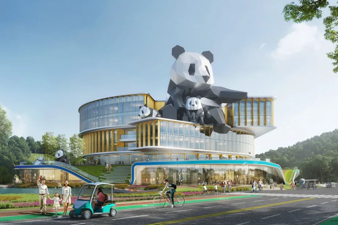 零壹城市为世界500强海亮集团的康养小镇设计了其酒店建筑群,其中包括了面向儿童的熊猫亲子酒店、为年轻人打造的观山酒店、巨石酒店,风格各异的小酒店群,以及赞颂生命力的迎客松酒店。这一系列酒店的设计站在生命的起点与终点,建立栖息空间与生命健康之间的对话。