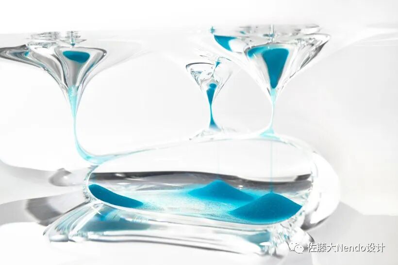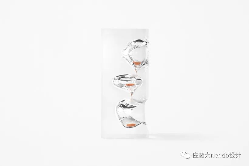 换句话说,这个系列的概念可以说是“设计时间本身”。四个不同的沙漏是由一个透明丙烯酸体量雕刻而成。内部的空腔积累的沙子是由手工抛光的细金属针尖端的磨具。