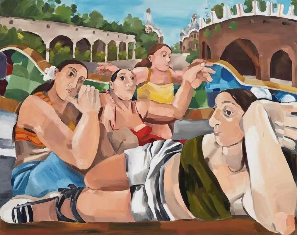 西班牙艺术家Cristina BanBan,1987年生于西班牙巴塞罗那,目前工作和生活于纽约布鲁克林。她使用大胆的肉质色调在巨大的画布上描绘人体,以宽厚的笔触强调形体的性感。她描绘当代生活场景,人群的亲密瞬间,孤独或与家人和朋友分享的时刻。