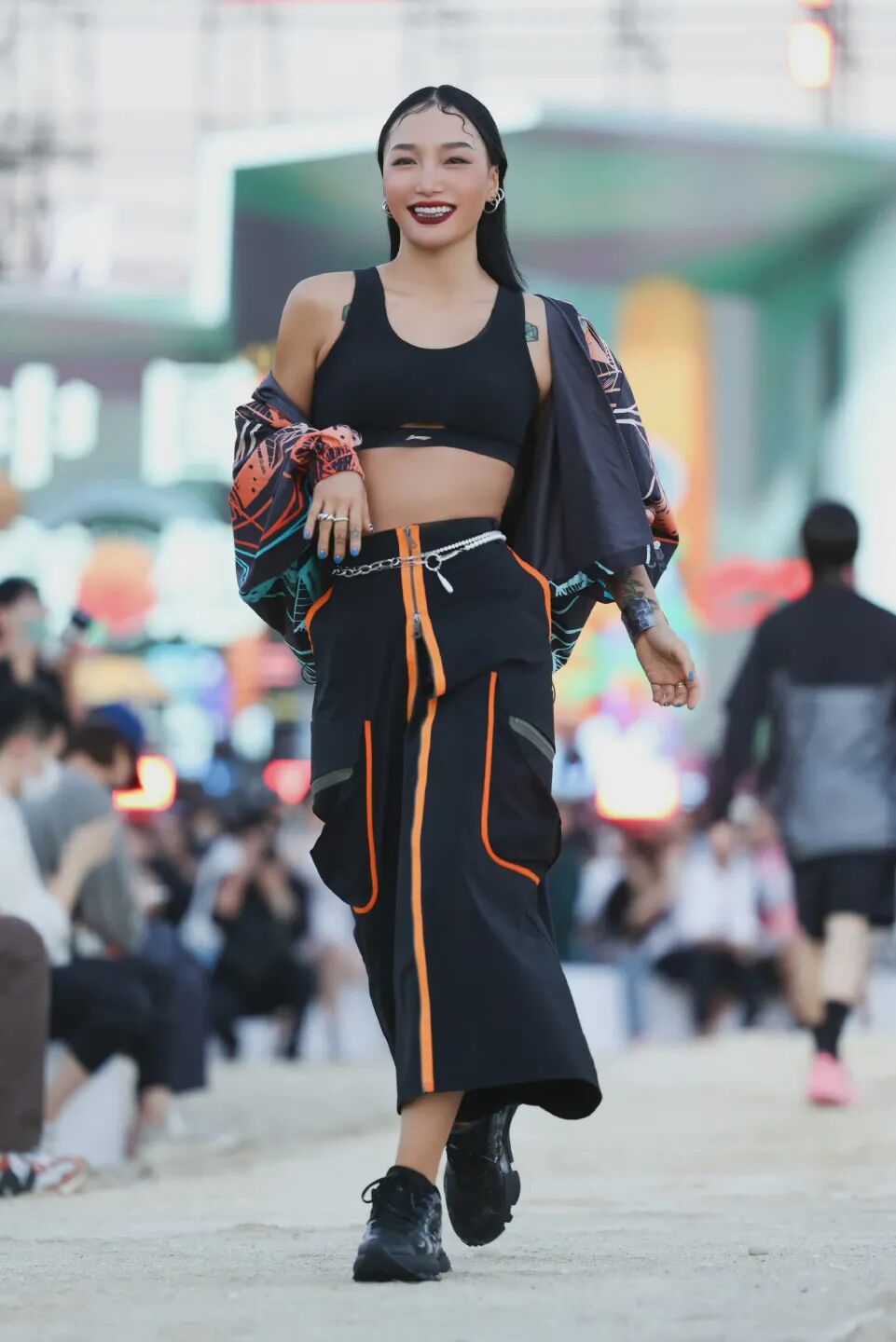 本季中国李宁22春夏系列以突破极限为灵感样本,在充满挑战的极限运动中感悟突破自我的生活方式,在传承千年的中国艺术文化中对话与创新,在兼具艺术审美和空间几何原理的折纸艺术中探寻匠心。演员钟楚曦、李宁签约街舞艺人黄潇、李宁签约舞者王润、电子竞技世界冠军选手Doinb、健身达人孙佳祺、街篮达人钟显超等潮流青年参与走秀。