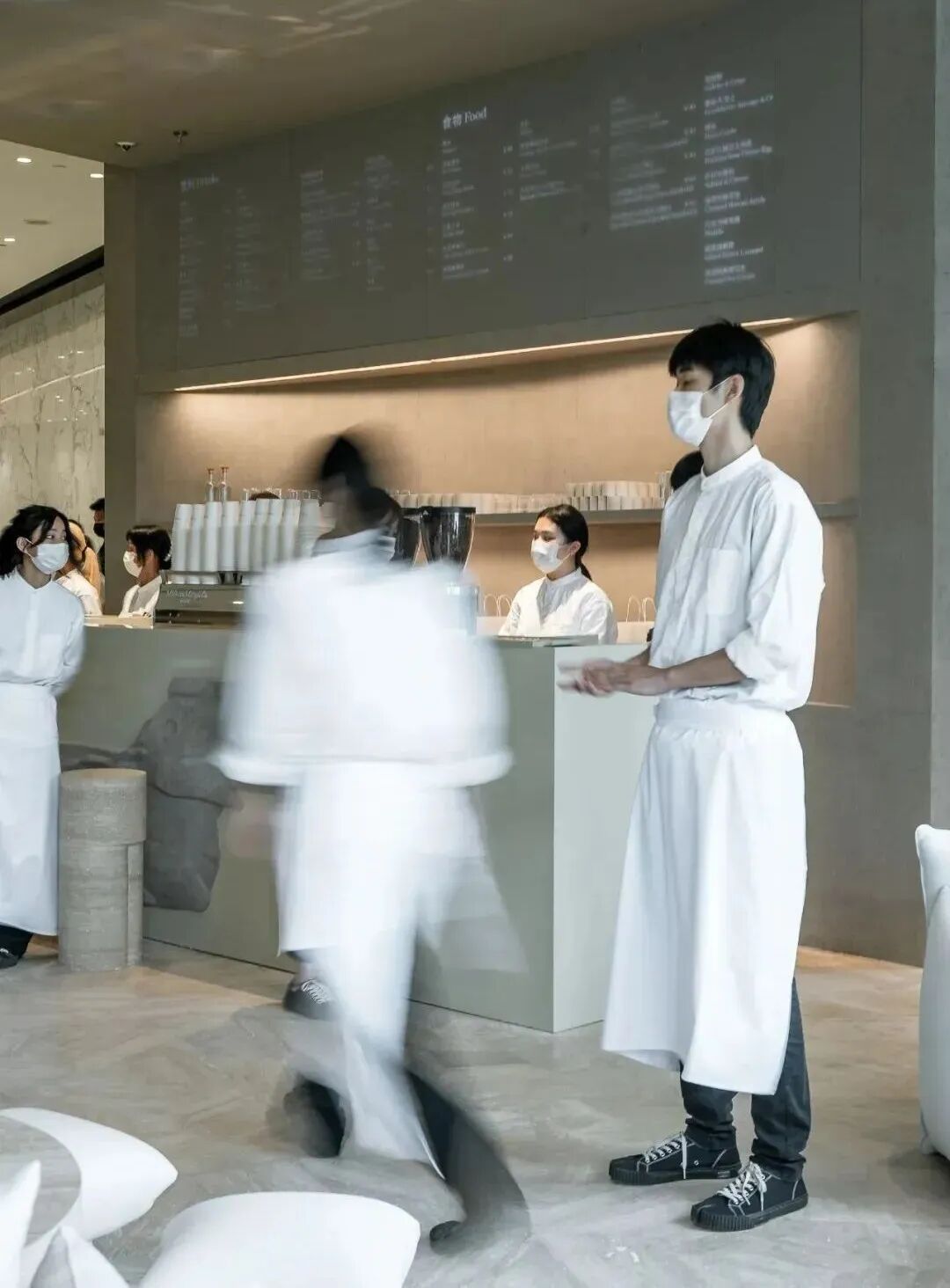 在室内设计中,不乏粗糙质朴的线条与高质感材料相组接,进一步体现随性与“未完成感”,也将“让不合适变成恰到好处”的品牌理念完美融入到咖啡厅的设计中。