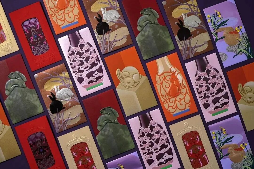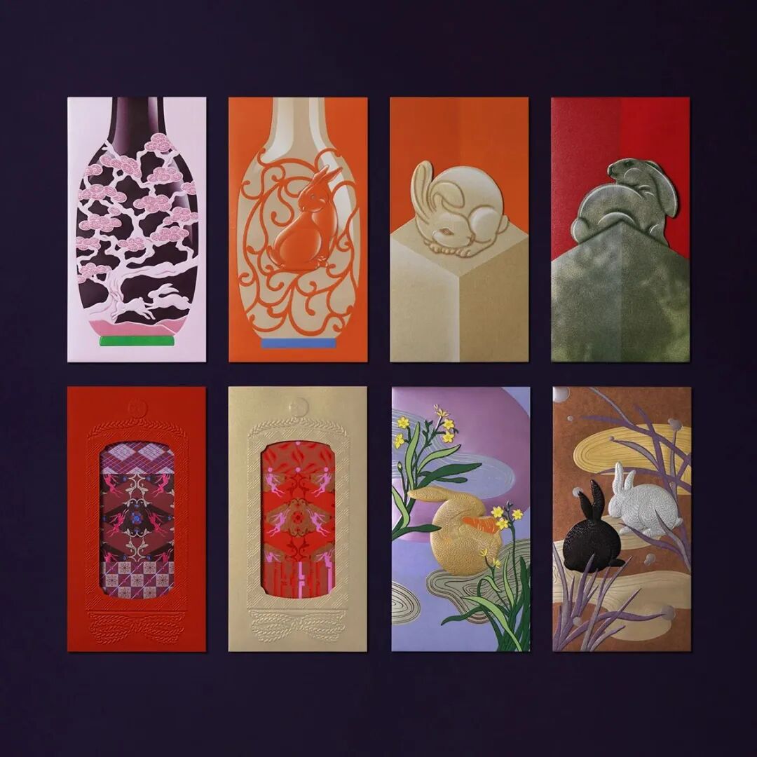 设计师Jack Tung对“兔年主题+中国风”予以多元演绎,在8款红包的封面上融入了众多具有代表性的传统元素,包括花瓶、玉兔雕像等等。