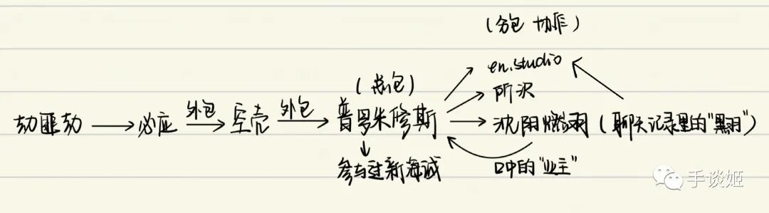 到这里,算是和简中互联网上的这则聊天记录产生了关系,也就是说这其实是一个层层外包的关系,有课代表网友进行了总结: