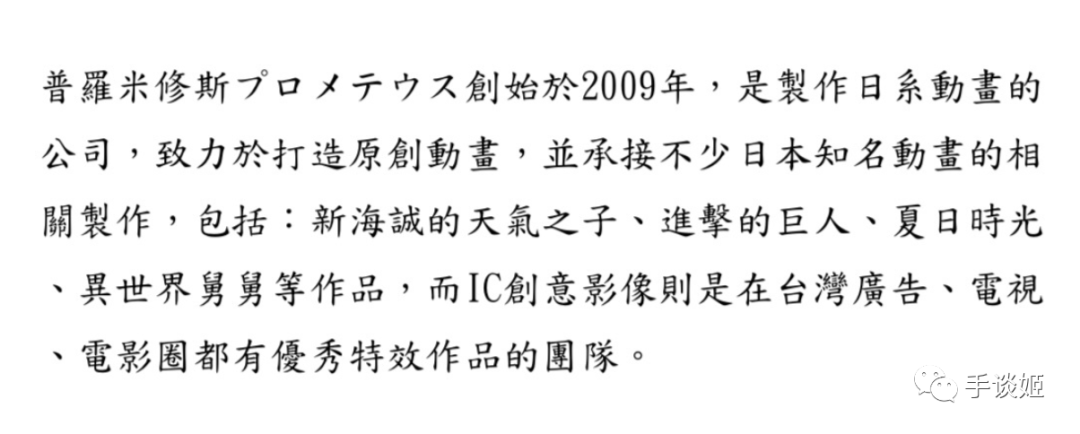 反而是在上述声明中写道,“普罗米修斯承接不少日本知名动画的相关制作,如天气之子、进击的巨人、夏日重现、异世界舅舅等”这段,可能是普罗米修斯在炫耀它的资历。