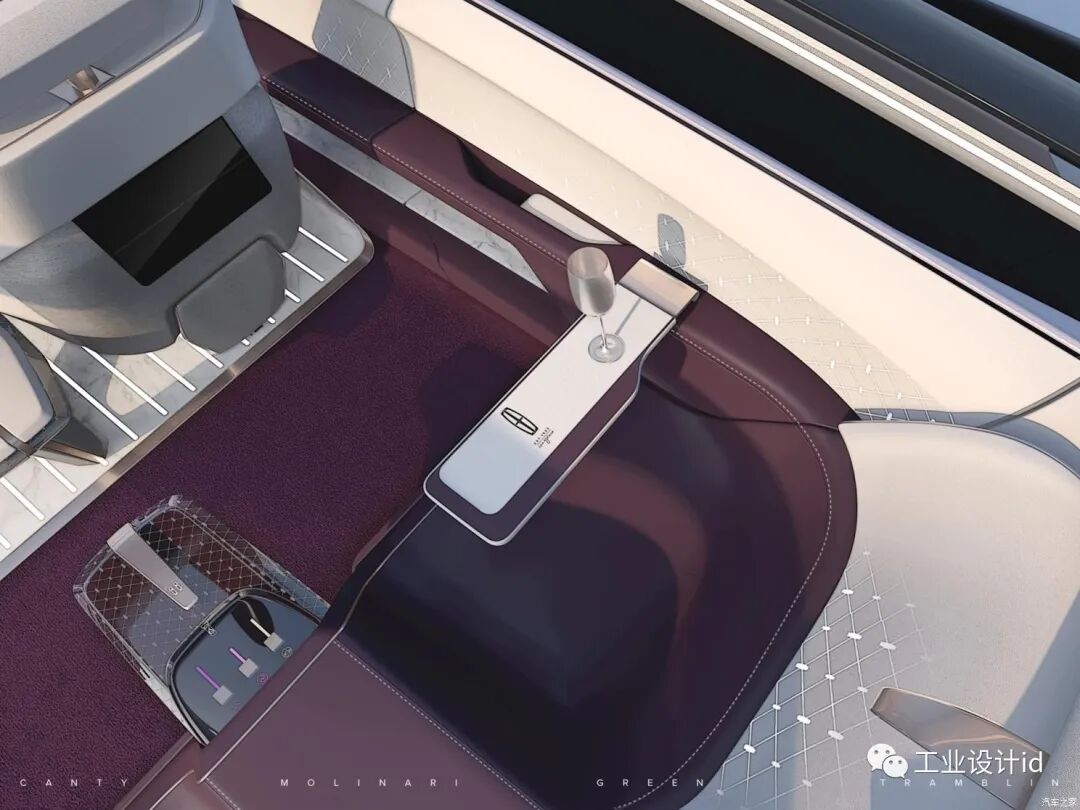 内饰方面充满科技感,首先前后座椅采用不同配色十分罕见,同时后排座椅还配备有独立脚托以及冰箱等设计,满足后排乘客的舒适度需求。中控台前方则几乎取消了实体按键,仅保留了一个旋钮装置。