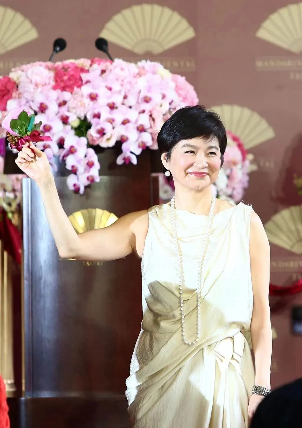 林青霞搭配的珠宝是三层珍珠项链和简约的钻石耳钉,并在大拇指上戴了一枚钻石排戒,低调又素雅。尽管如此,依旧在人群中十分亮眼。