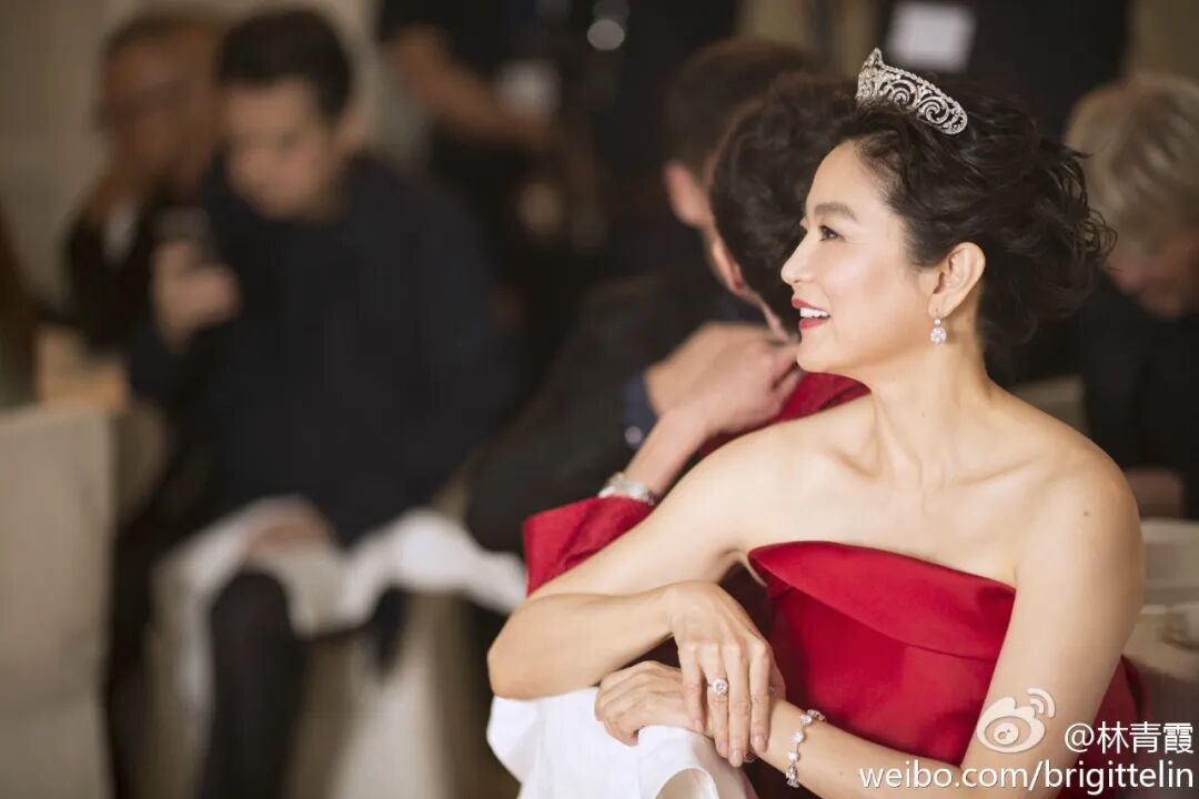 2014年,林青霞戴着一顶璀璨耀眼的钻石冠冕,身着一袭红裙出席了自己60岁的生日宴。