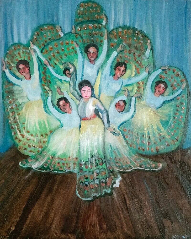 孔雀舞 木板油画 2021