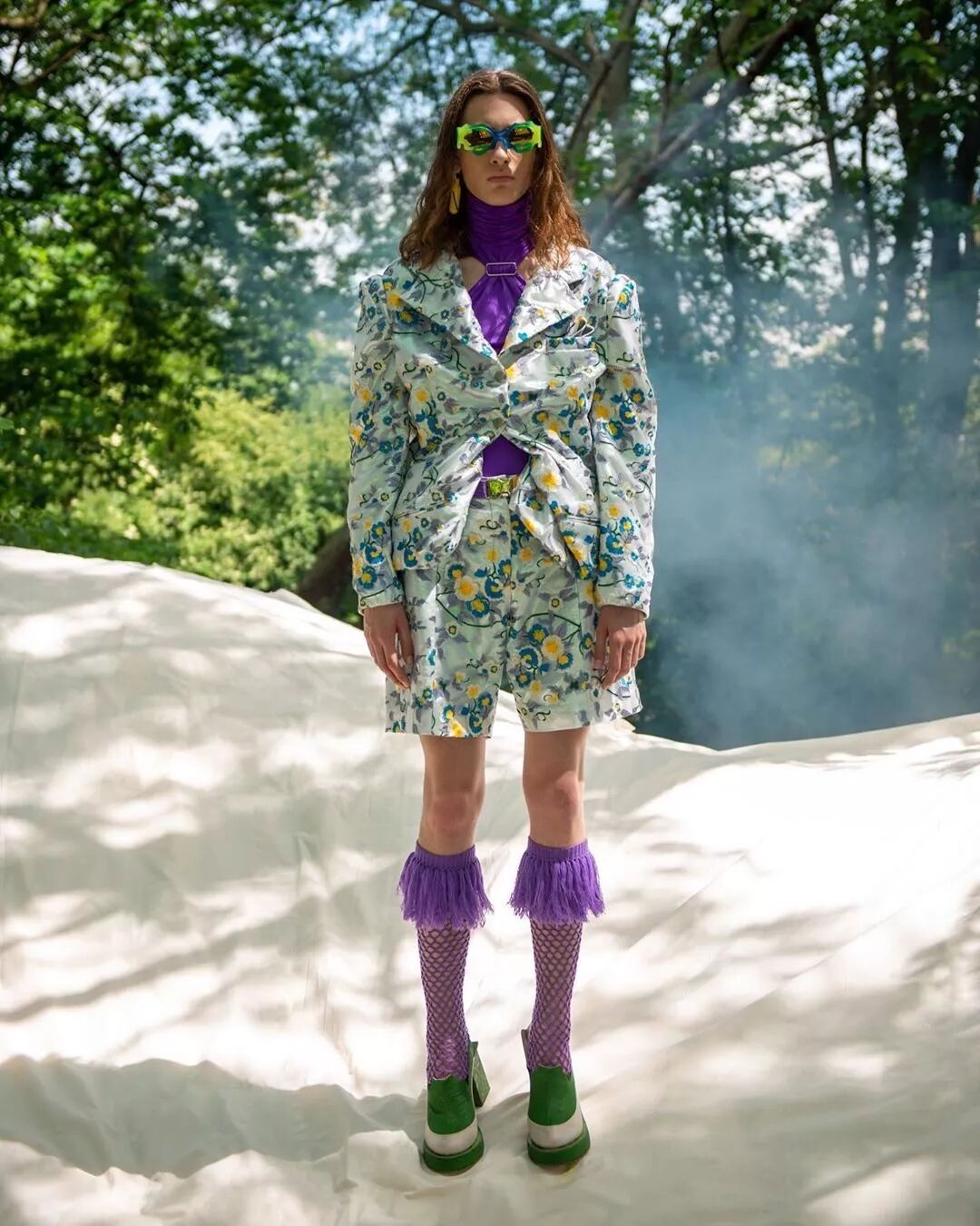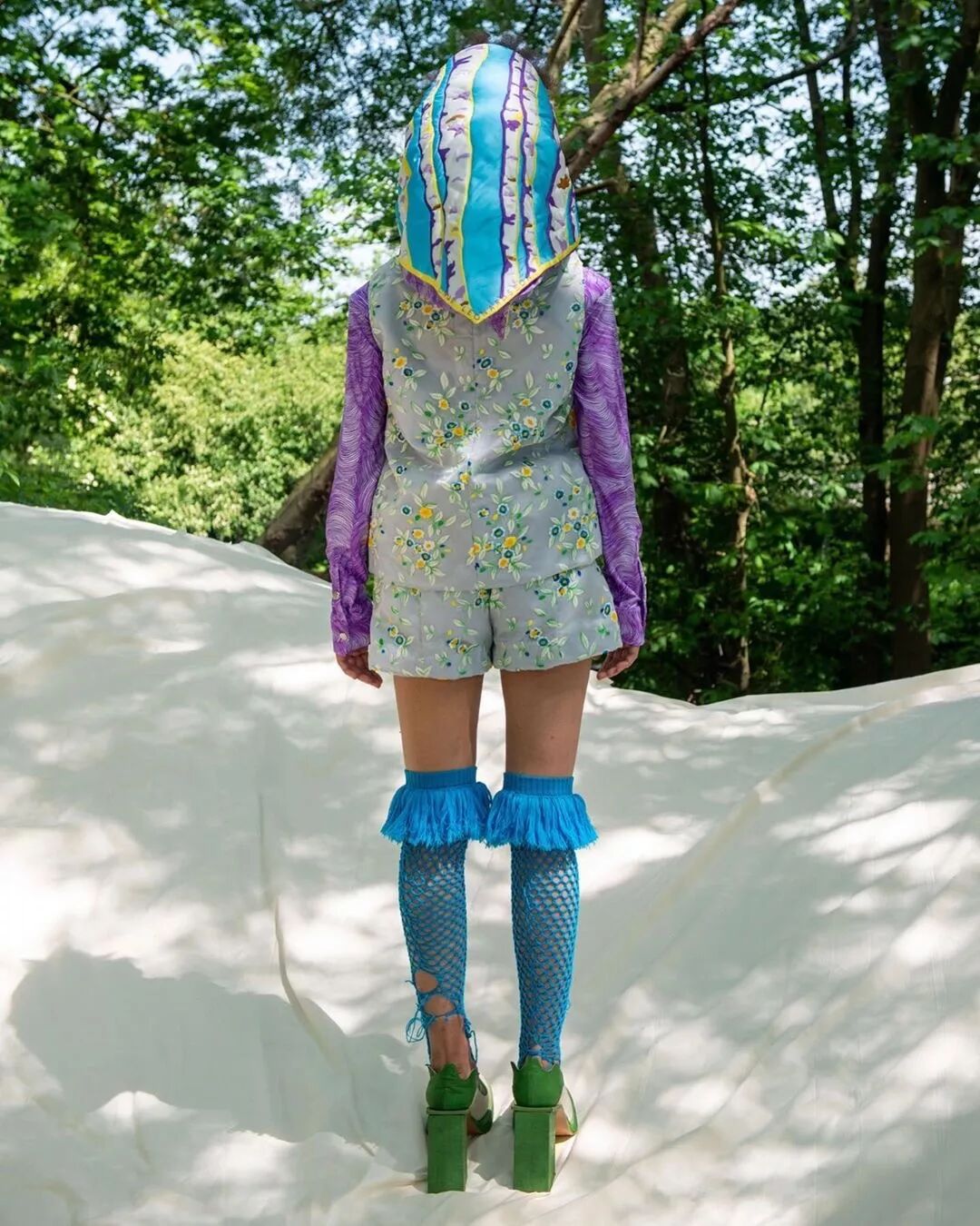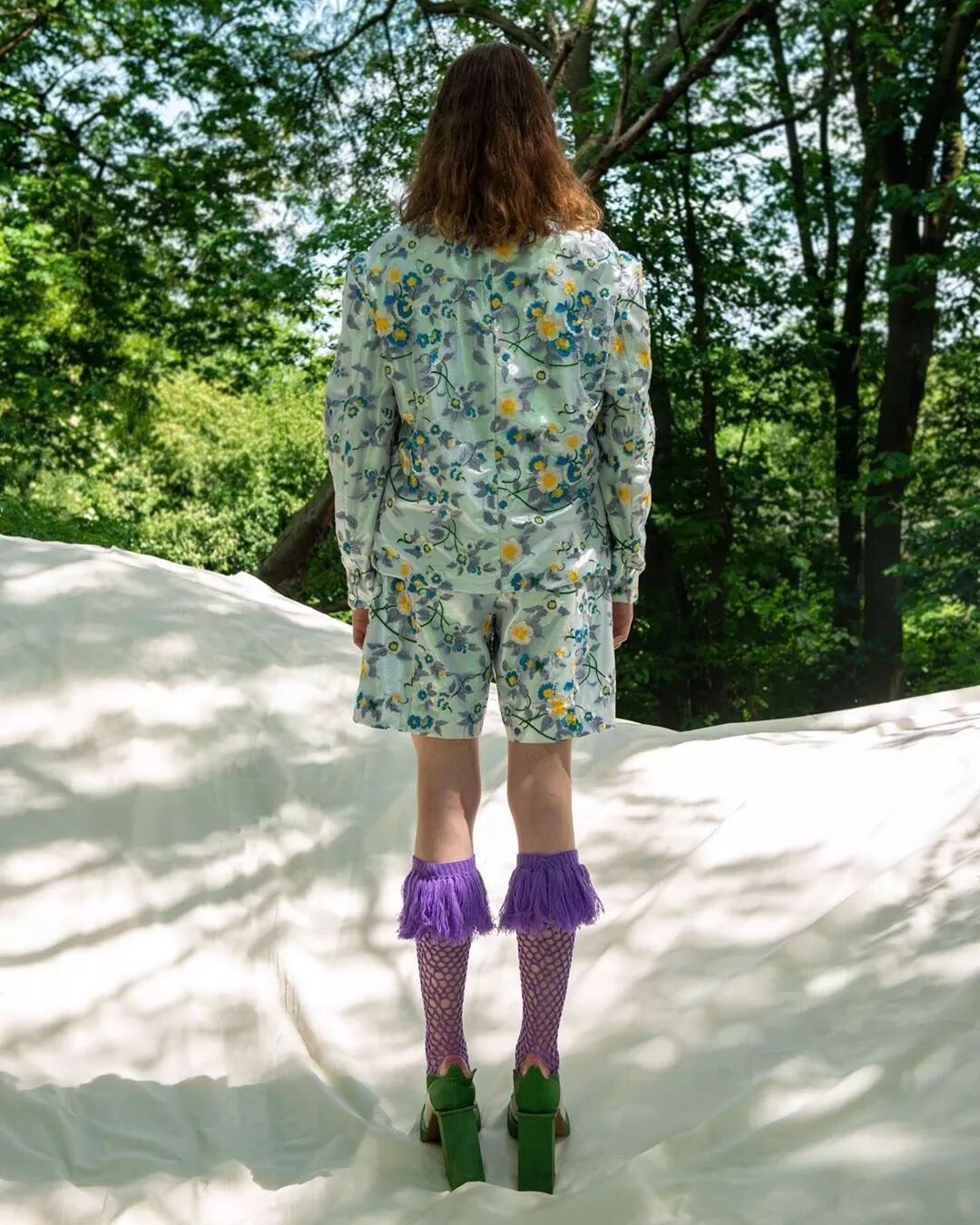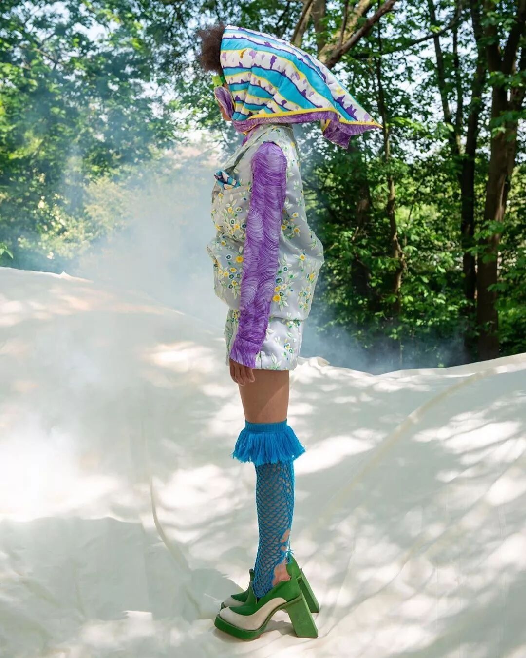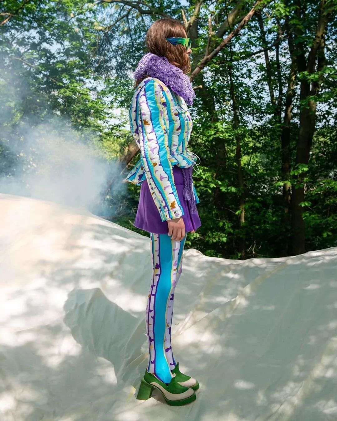 受他在斯德哥尔摩参加喧闹的森林狂欢的青少年时期的启发,他的研究生毕业作品系列——题为「SEE YOU IN THE FOG」是一个明亮的色彩,有趣的细节,以及从这些令人兴奋的日子借鉴来的诱人的纹理。