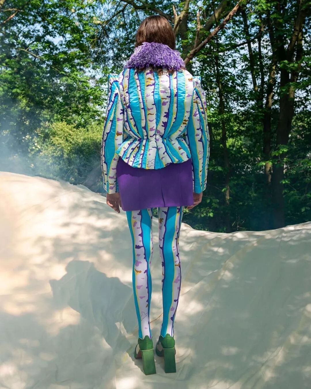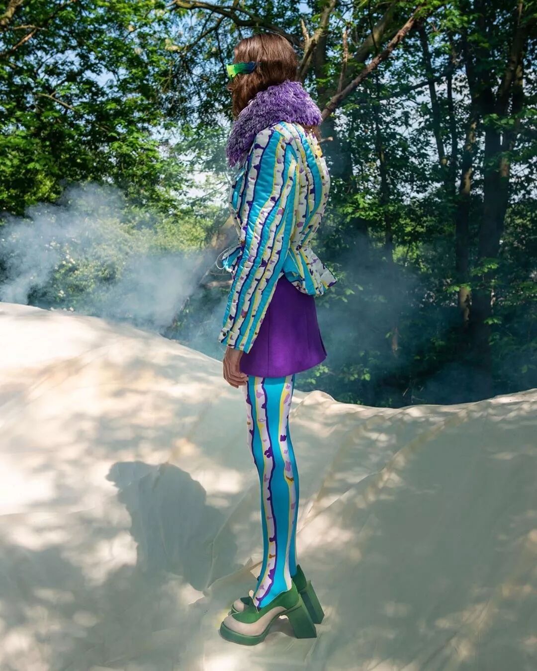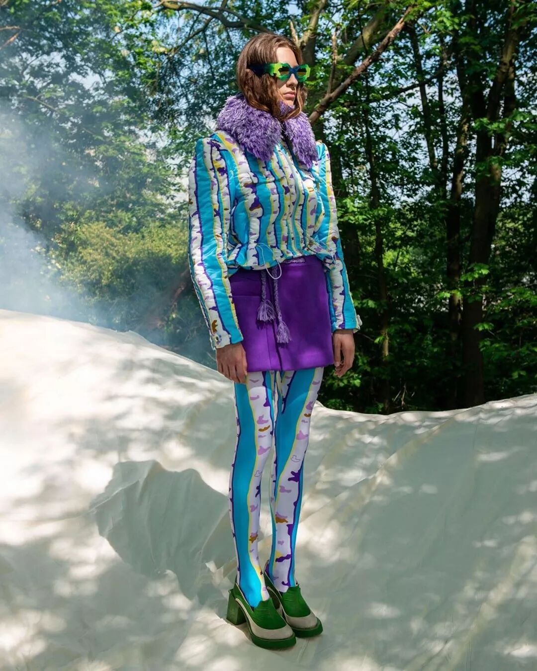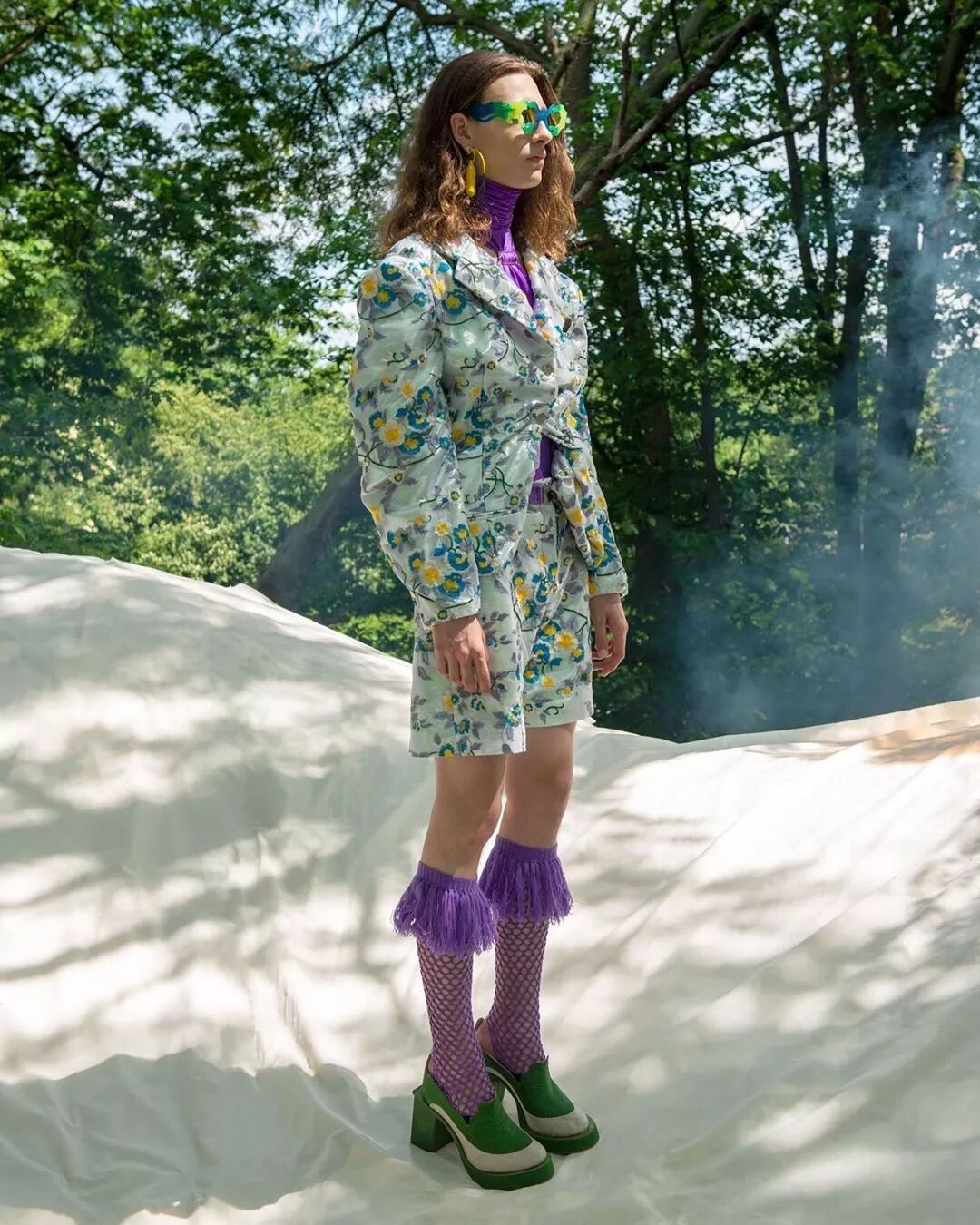 受他在斯德哥尔摩参加喧闹的森林狂欢的青少年时期的启发,他的研究生毕业作品系列——题为「SEE YOU IN THE FOG」是一个明亮的色彩,有趣的细节,以及从这些令人兴奋的日子借鉴来的诱人的纹理。