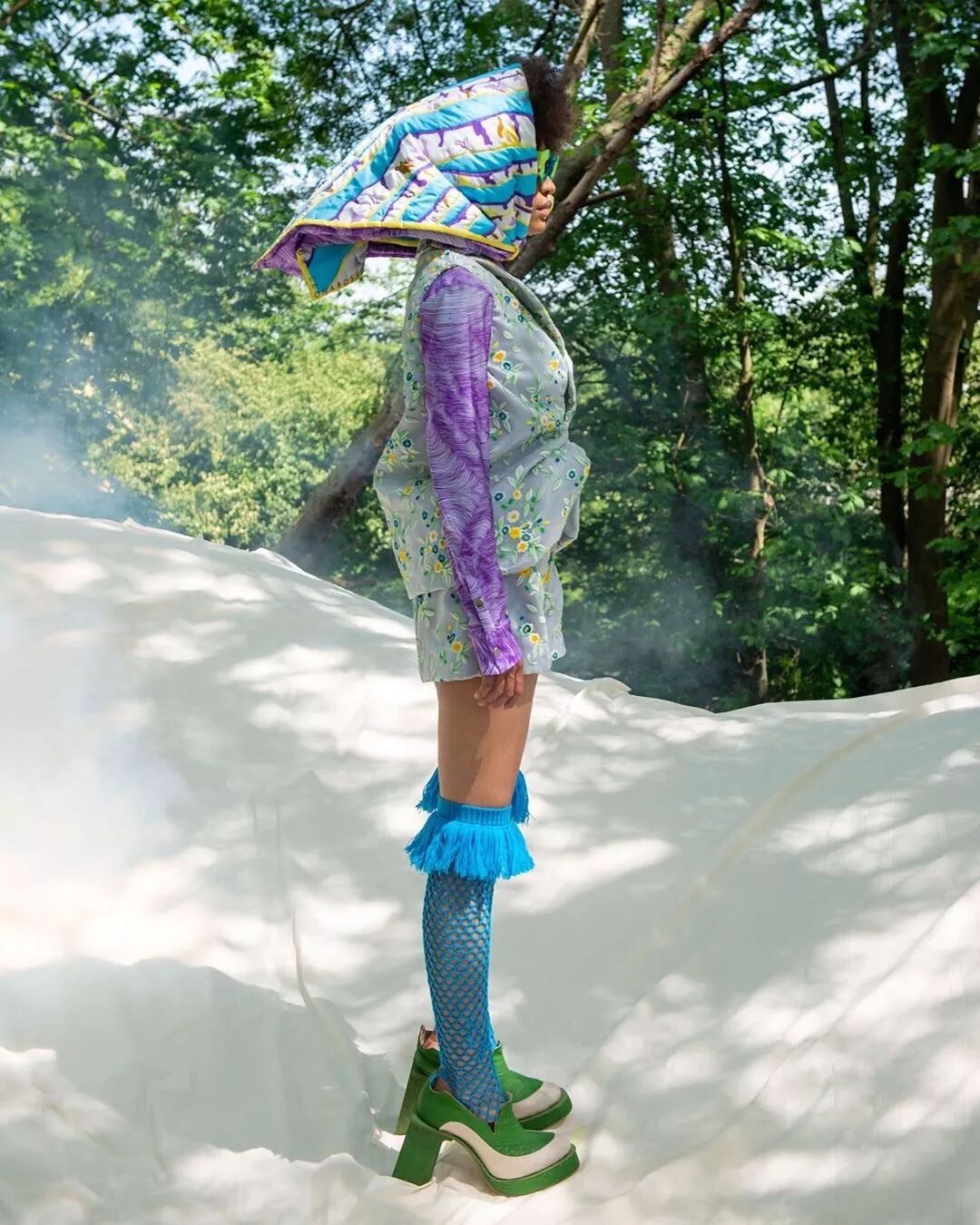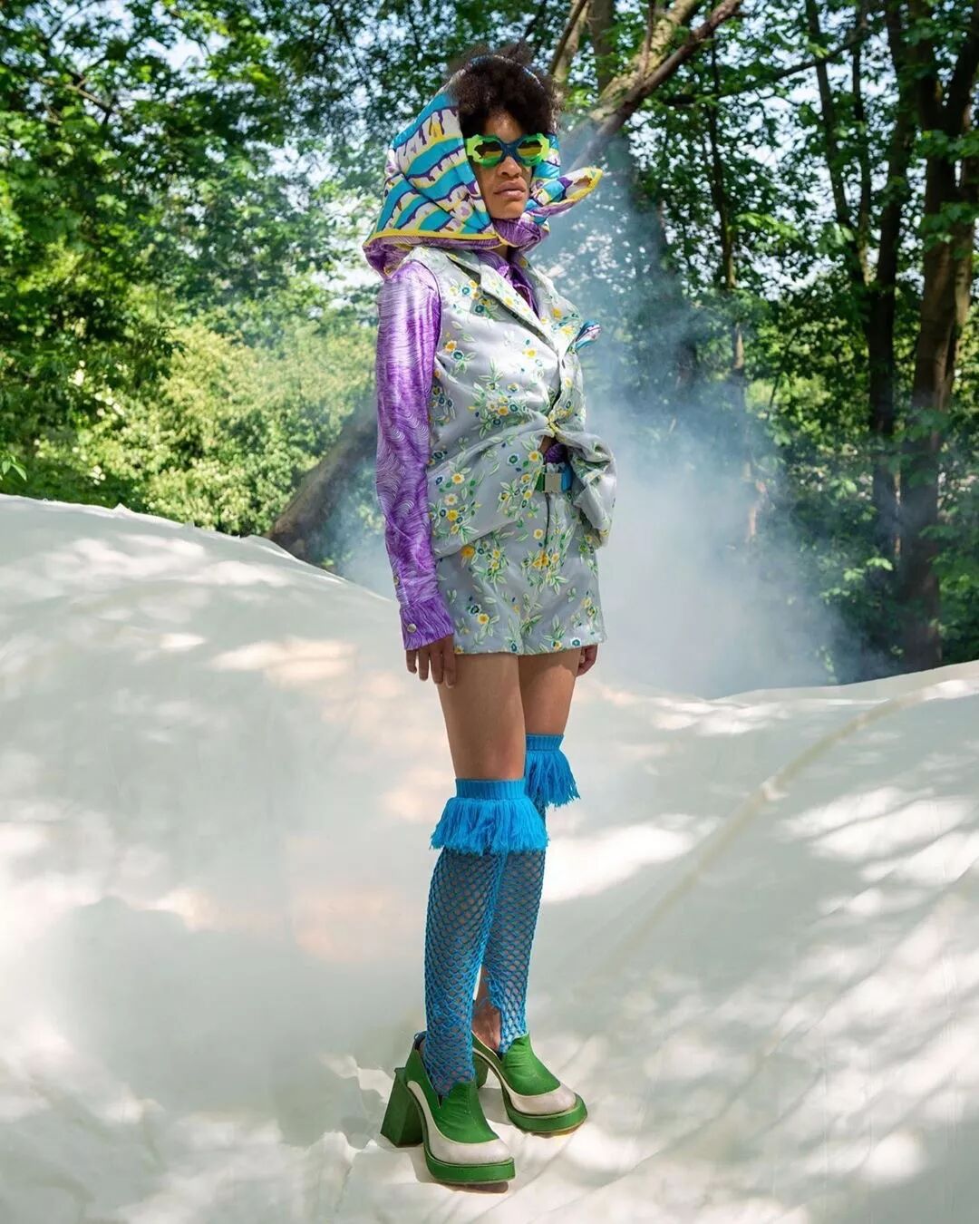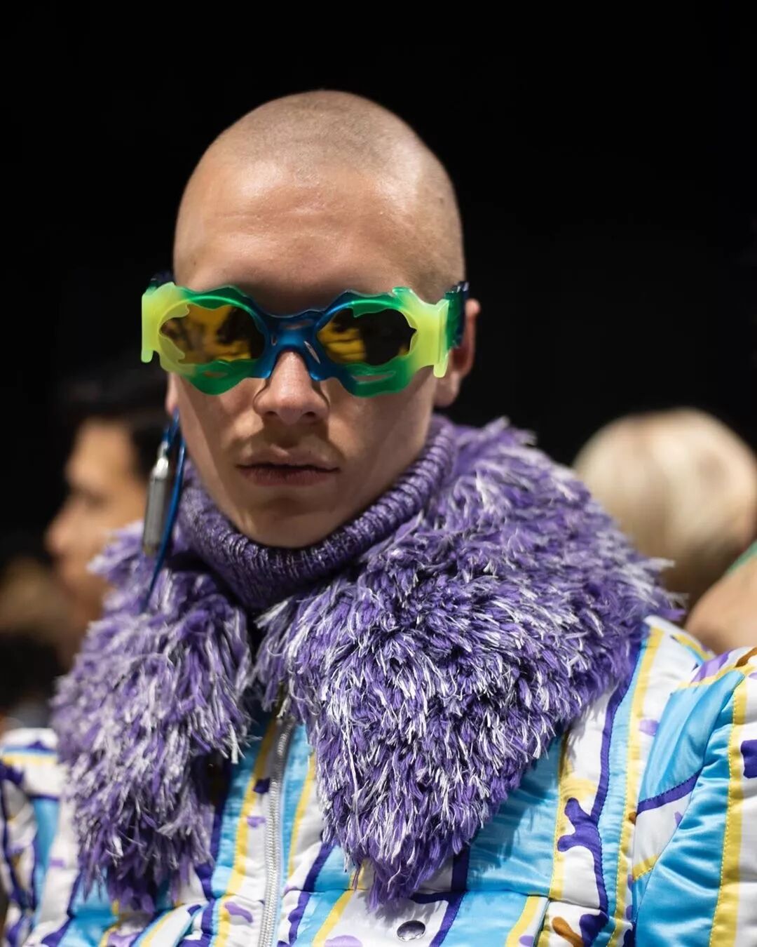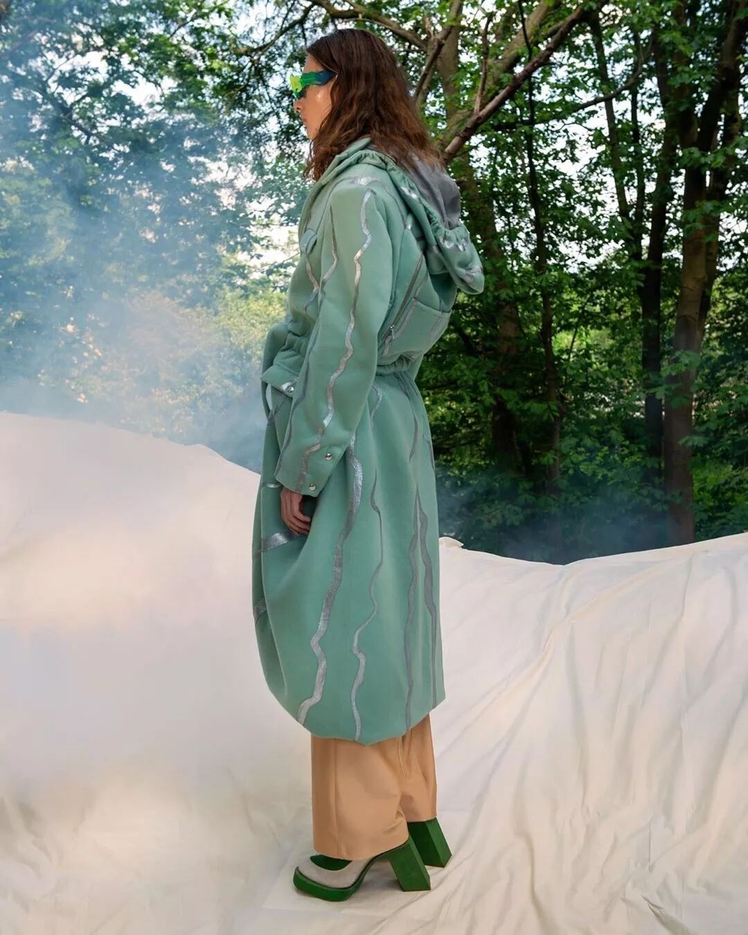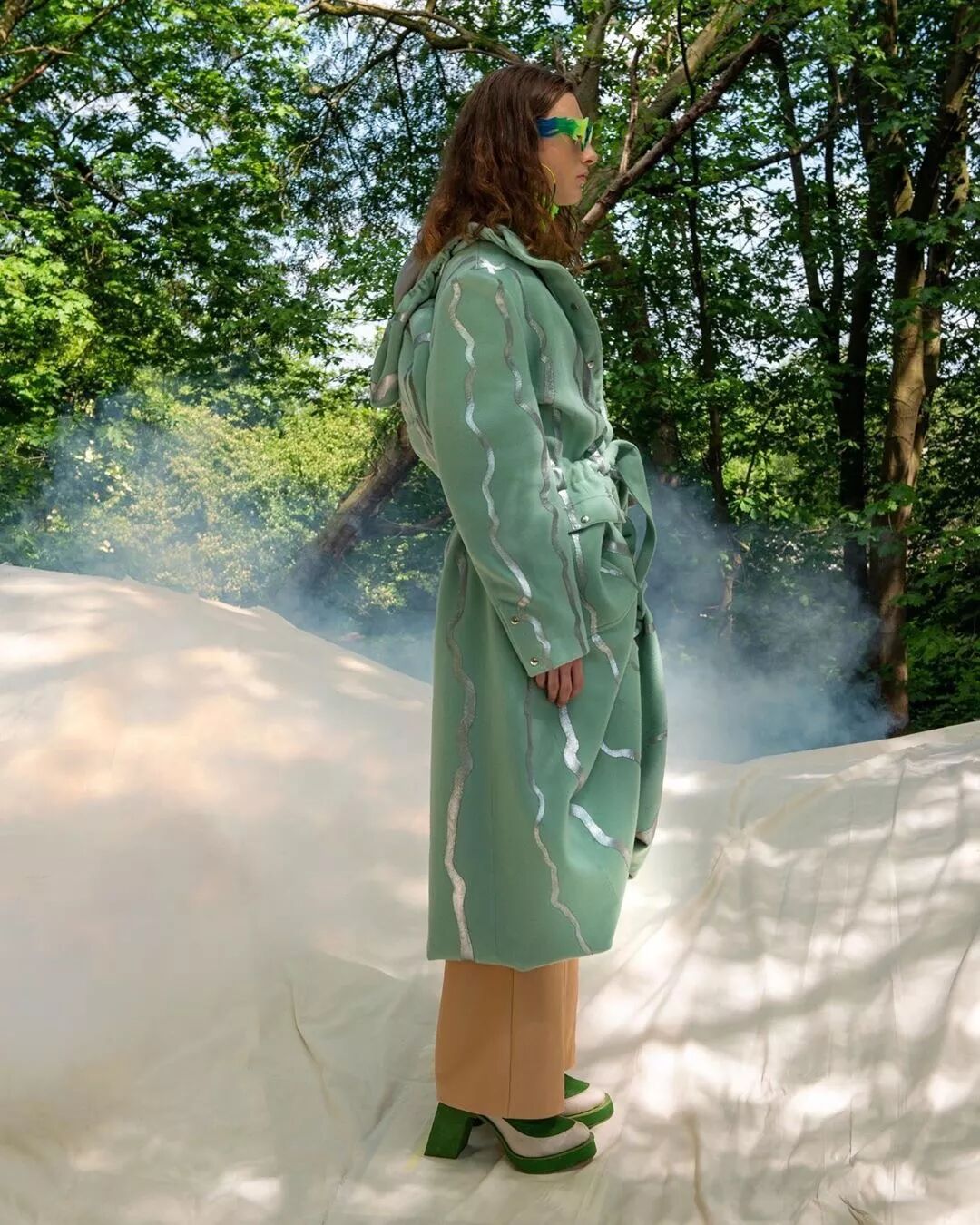 受他在斯德哥尔摩参加喧闹的森林狂欢的青少年时期的启发,他的研究生毕业作品系列——题为「SEE YOU IN THE FOG」是一个明亮的色彩,有趣的细节,以及从这些令人兴奋的日子借鉴来的诱人的纹理。
