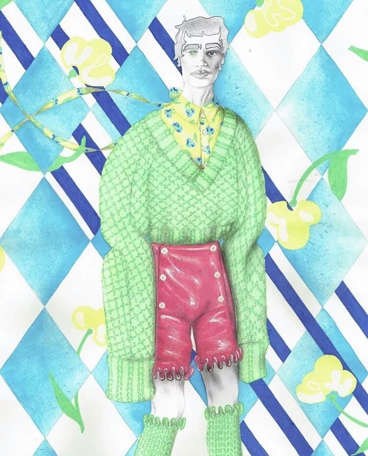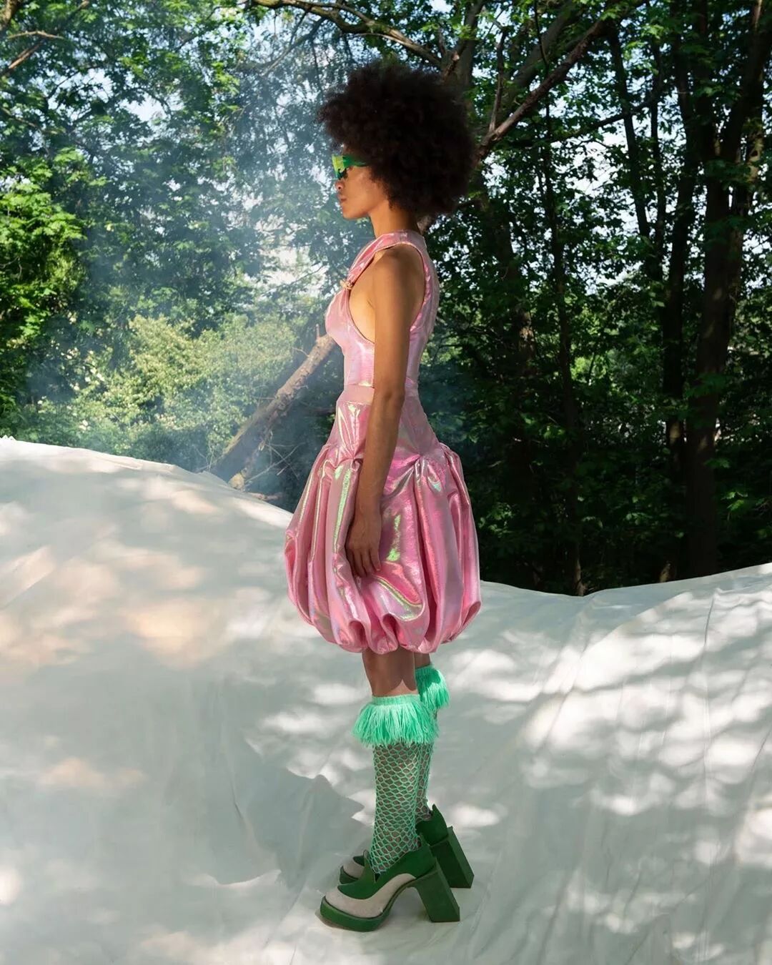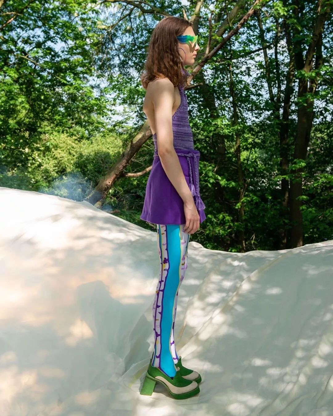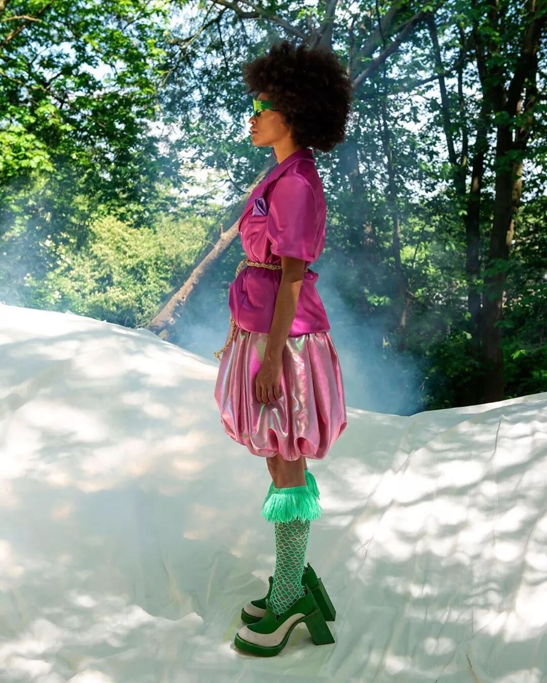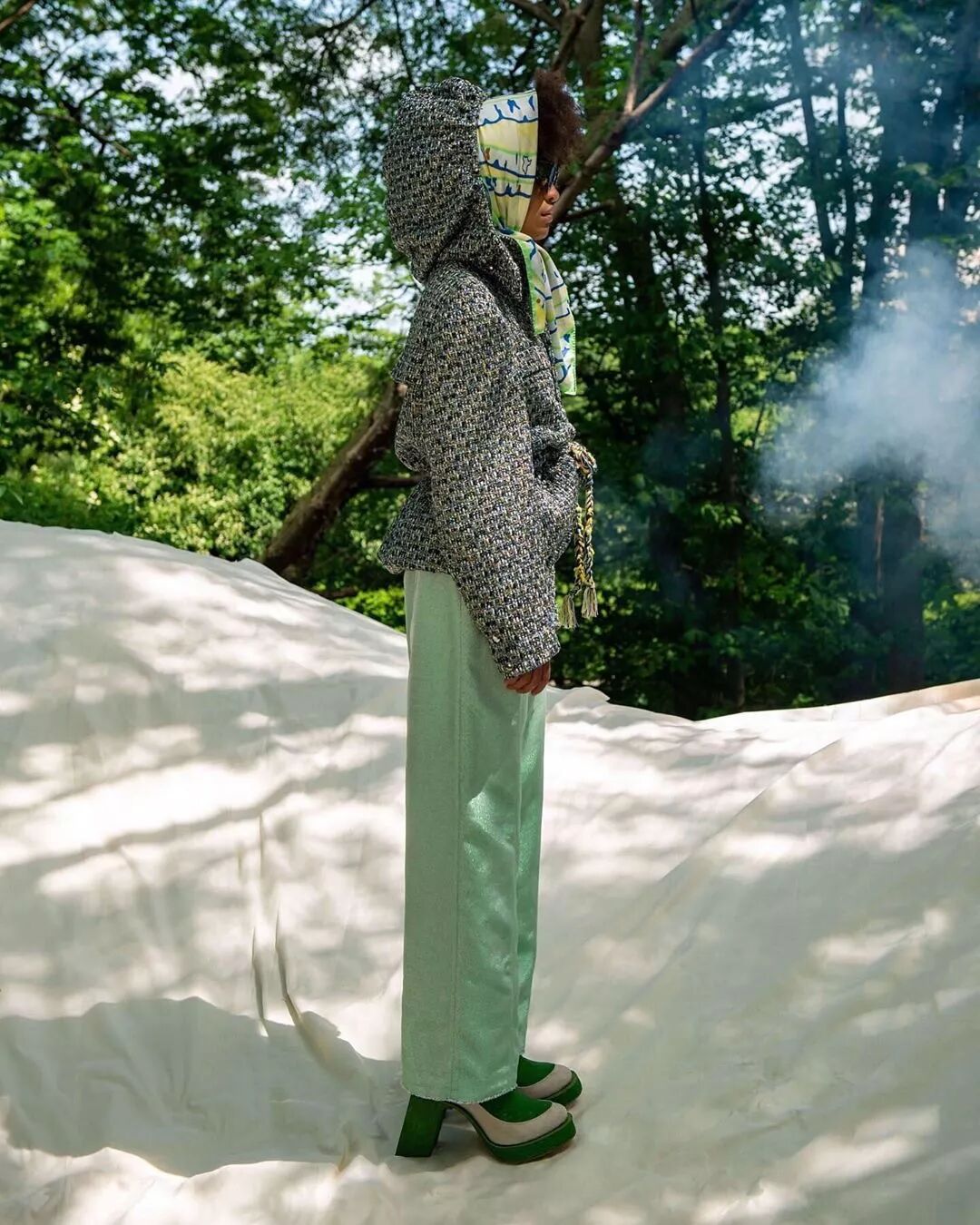 受他在斯德哥尔摩参加喧闹的森林狂欢的青少年时期的启发,他的研究生毕业作品系列——题为「SEE YOU IN THE FOG」是一个明亮的色彩,有趣的细节,以及从这些令人兴奋的日子借鉴来的诱人的纹理。
