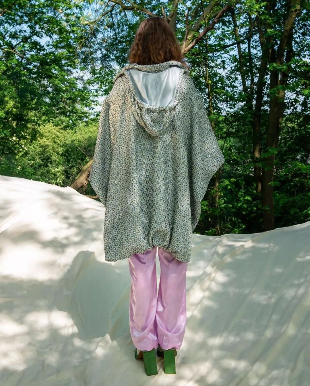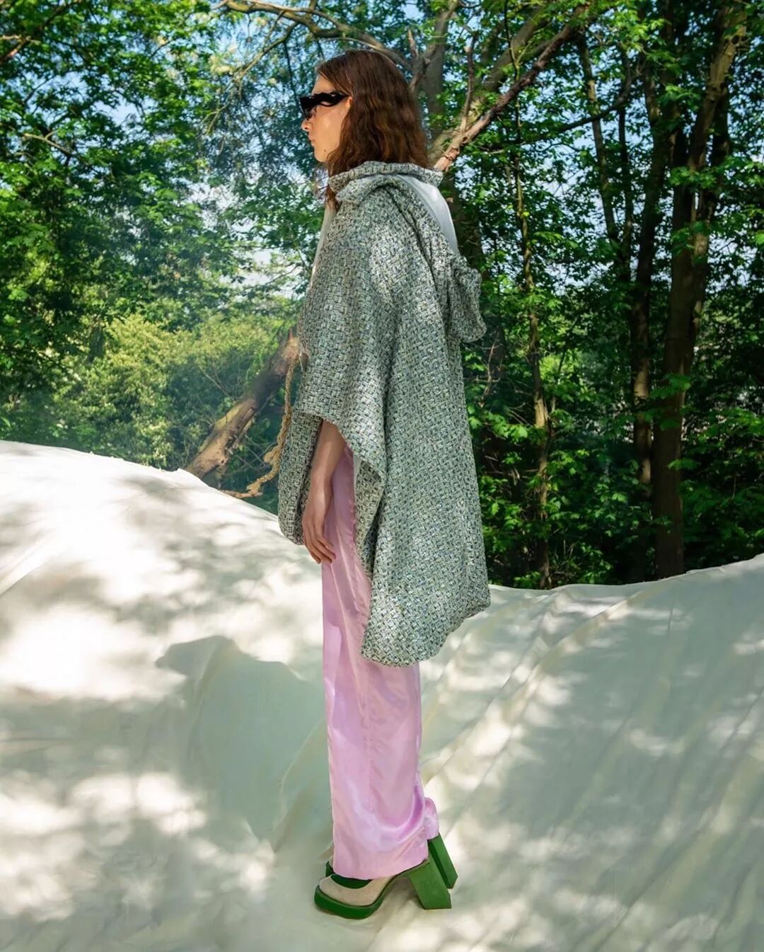 Linus Leonardsson喜欢一直调整面料选择,使之适应其他人的剩余物。他把羊绒、丝绸、花呢和蕾丝混搭在一起,再加上一些新买的技术面料和材料,让衣服更闪亮。