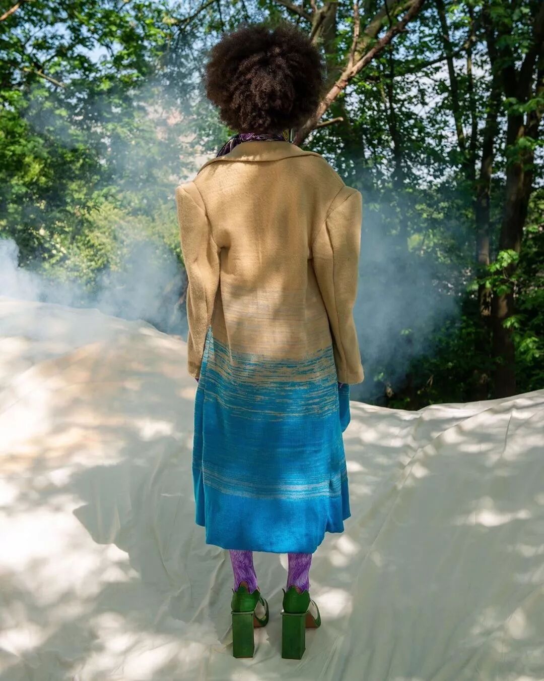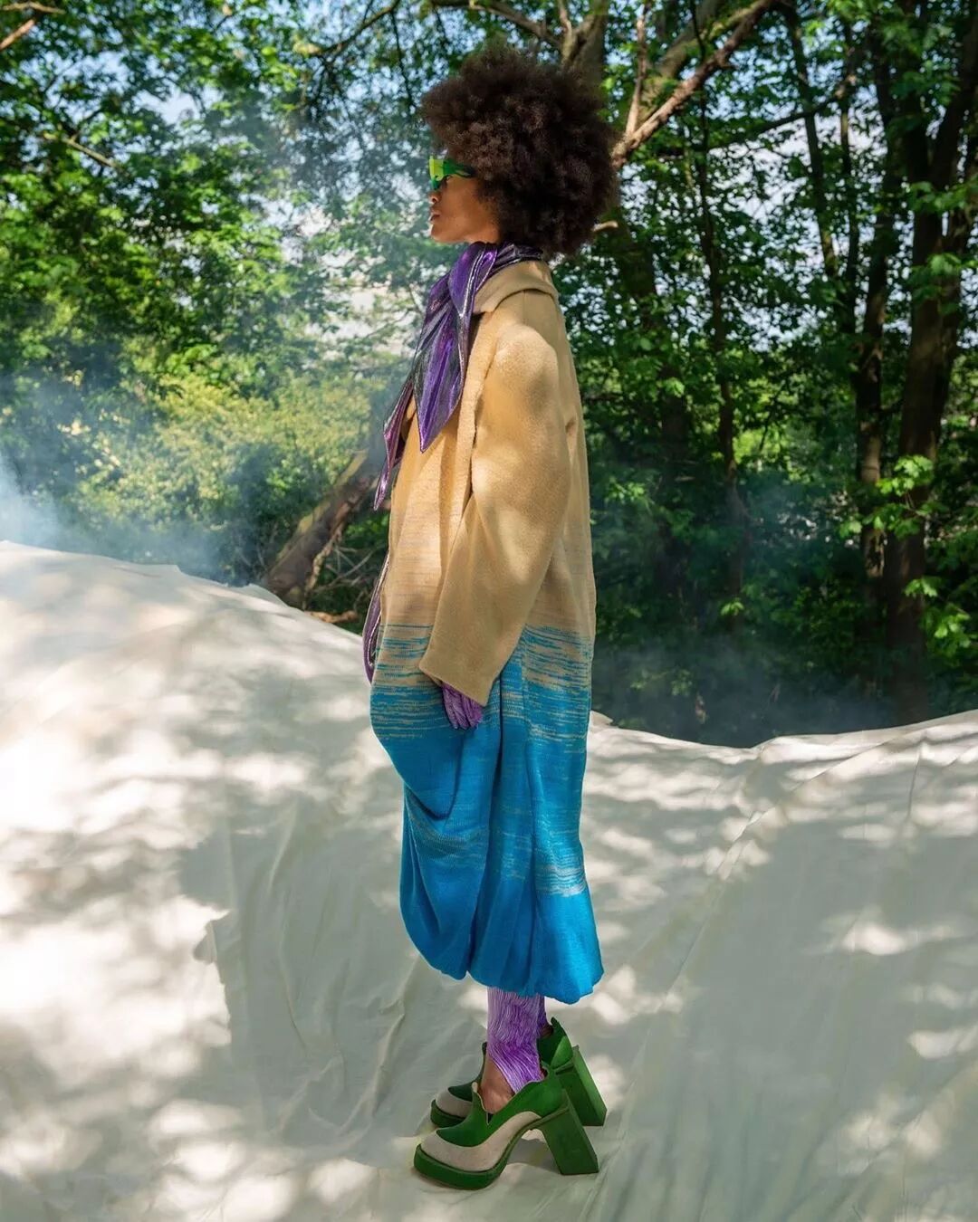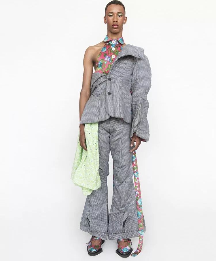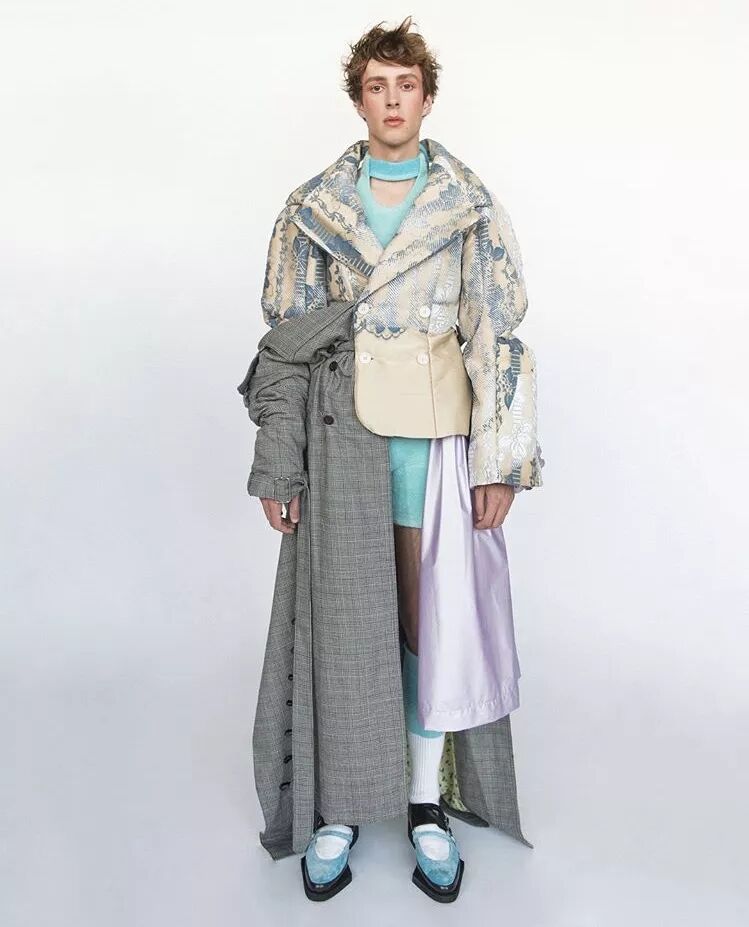 我创作「SEE YOU INTHE FOG」的主要目标之一就是消除人们对性别时尚的期望。对我来说,把自己局限于男装或女装已经是过去的事了,通过不按性别对服装进行编码,我认为有可能重新定义一个人意味着什么。