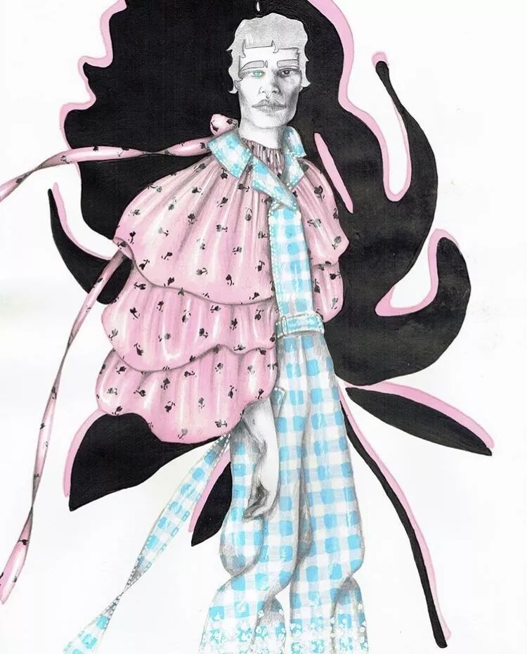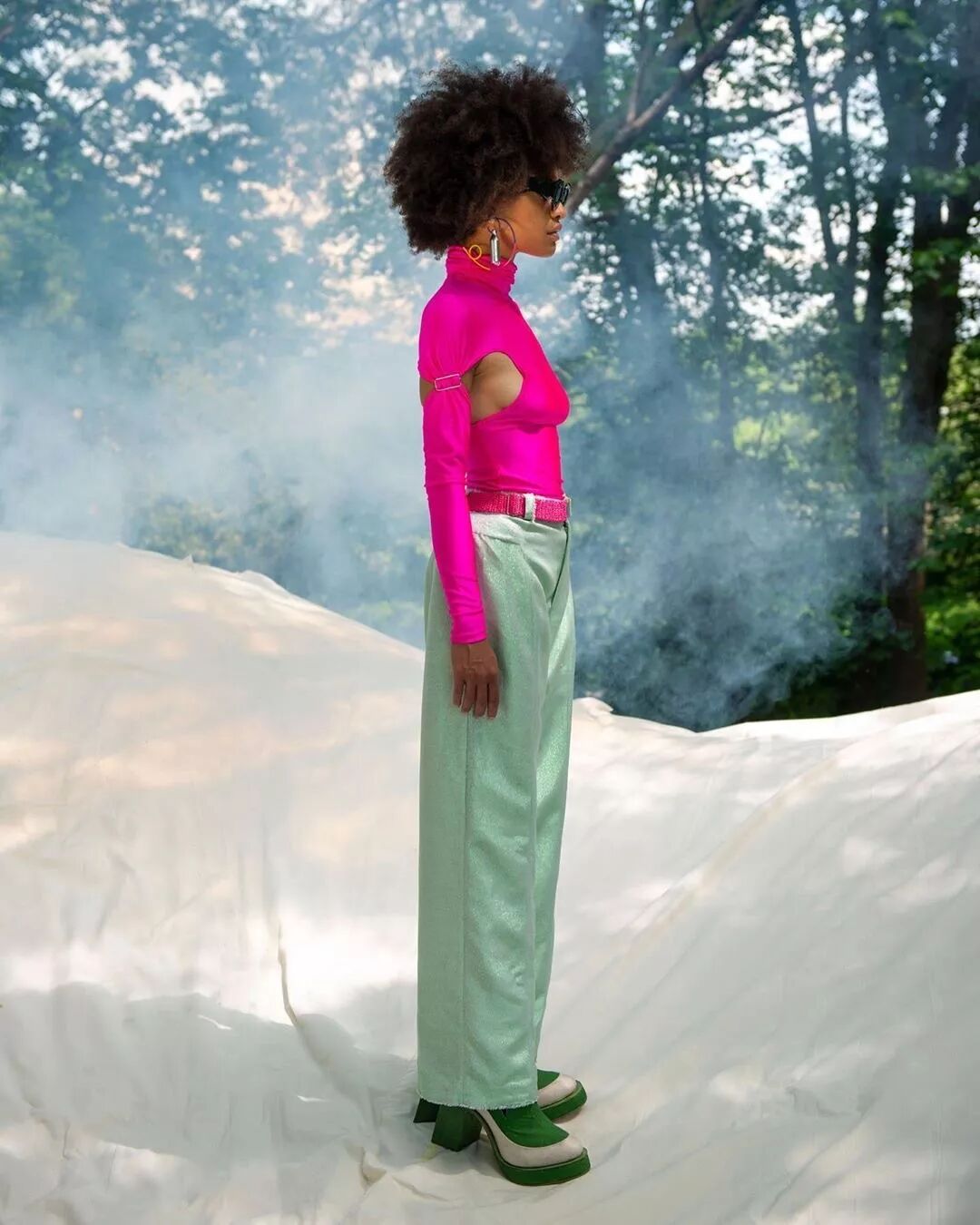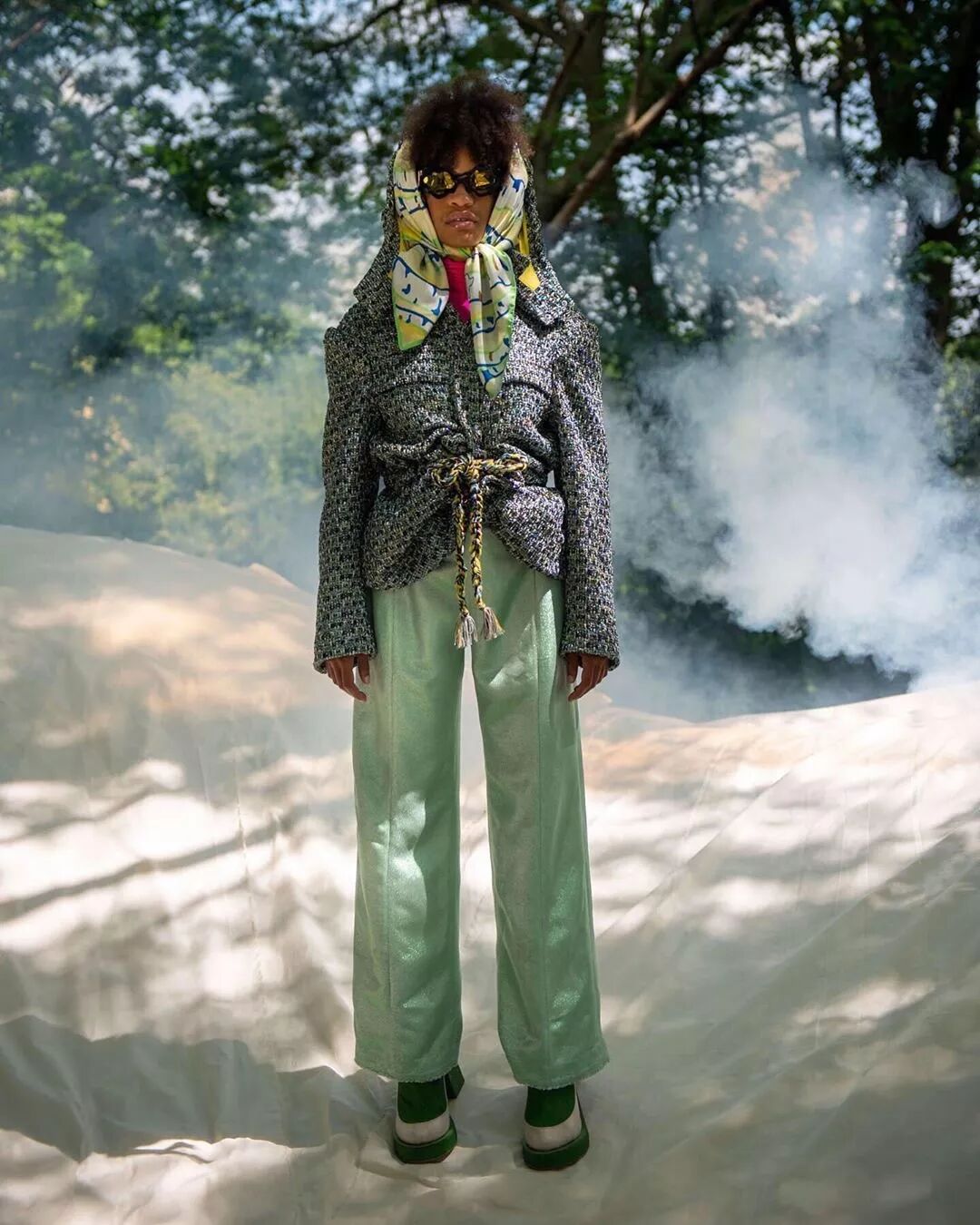 我创作「SEE YOU INTHE FOG」的主要目标之一就是消除人们对性别时尚的期望。对我来说,把自己局限于男装或女装已经是过去的事了,通过不按性别对服装进行编码,我认为有可能重新定义一个人意味着什么。