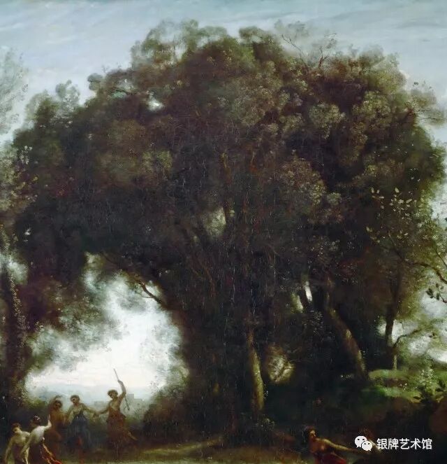 今天给大家介绍法国画家柯罗创作于1850年的油画作品《林妖的舞蹈》,现藏于法国巴黎卢浮宫。