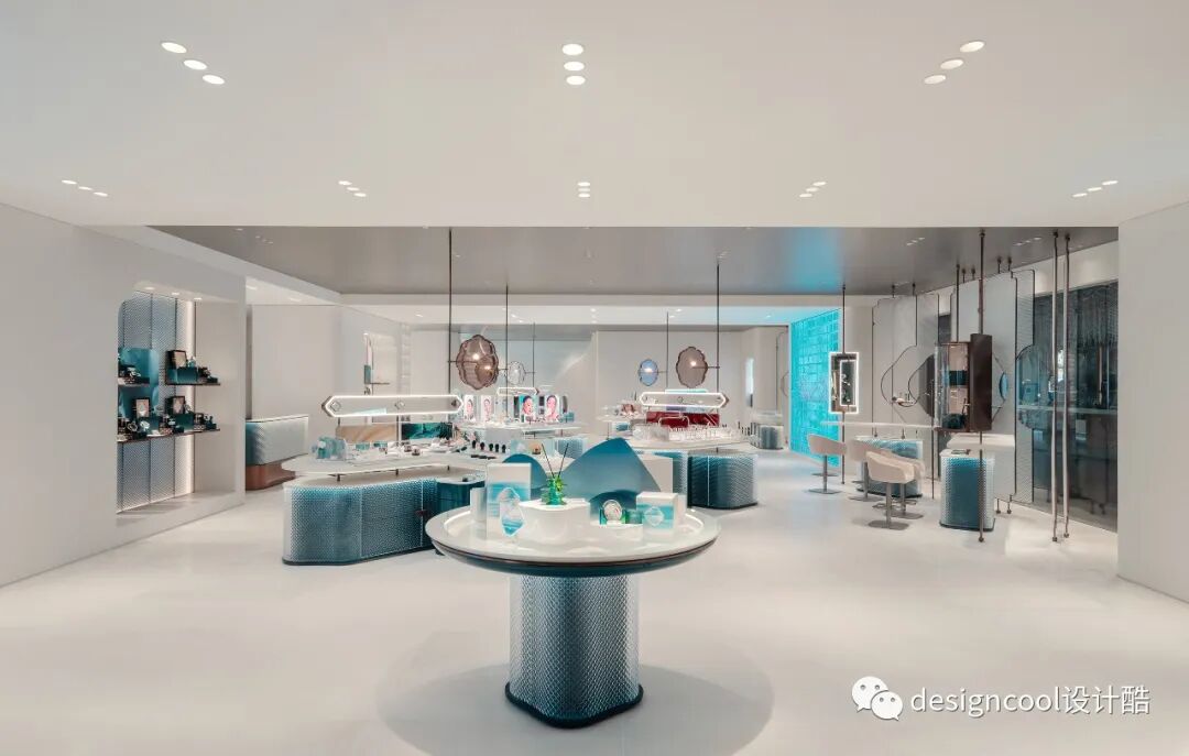 基于叙事文本,西子在这里通过萃取装置提炼东方养肤精髓,收集四季鲜花将花凝制作成美妆产品。矩阵式百子柜成为空间视觉焦点,与旋转楼梯形成一刚一柔的对比和张力,亦成为年轻人的打卡之地,帮助品牌门店在网络上出圈。