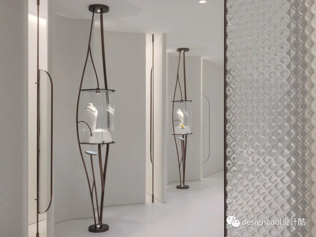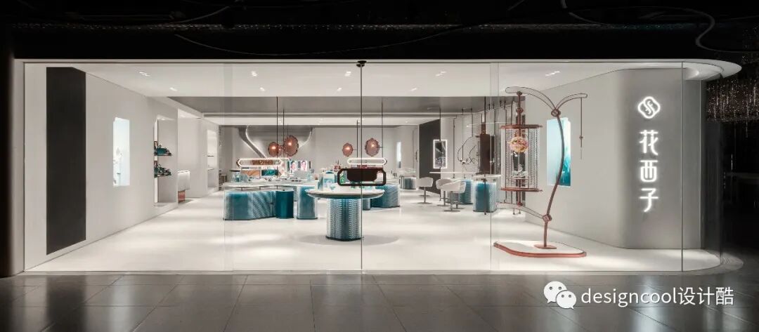 立品从品牌视觉中提取花西子标志性的轩窗LOGO,通过现代语言进行转译,立体化和单元化后生成门店陈列道具和空间中的不同造型细节,这些轩窗元素的转译和创新,统一了空间功能和审美,构建起强烈的品牌记忆点。