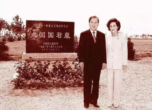 · 卢泰愚与夫人金玉淑在卢国国君墓前合影