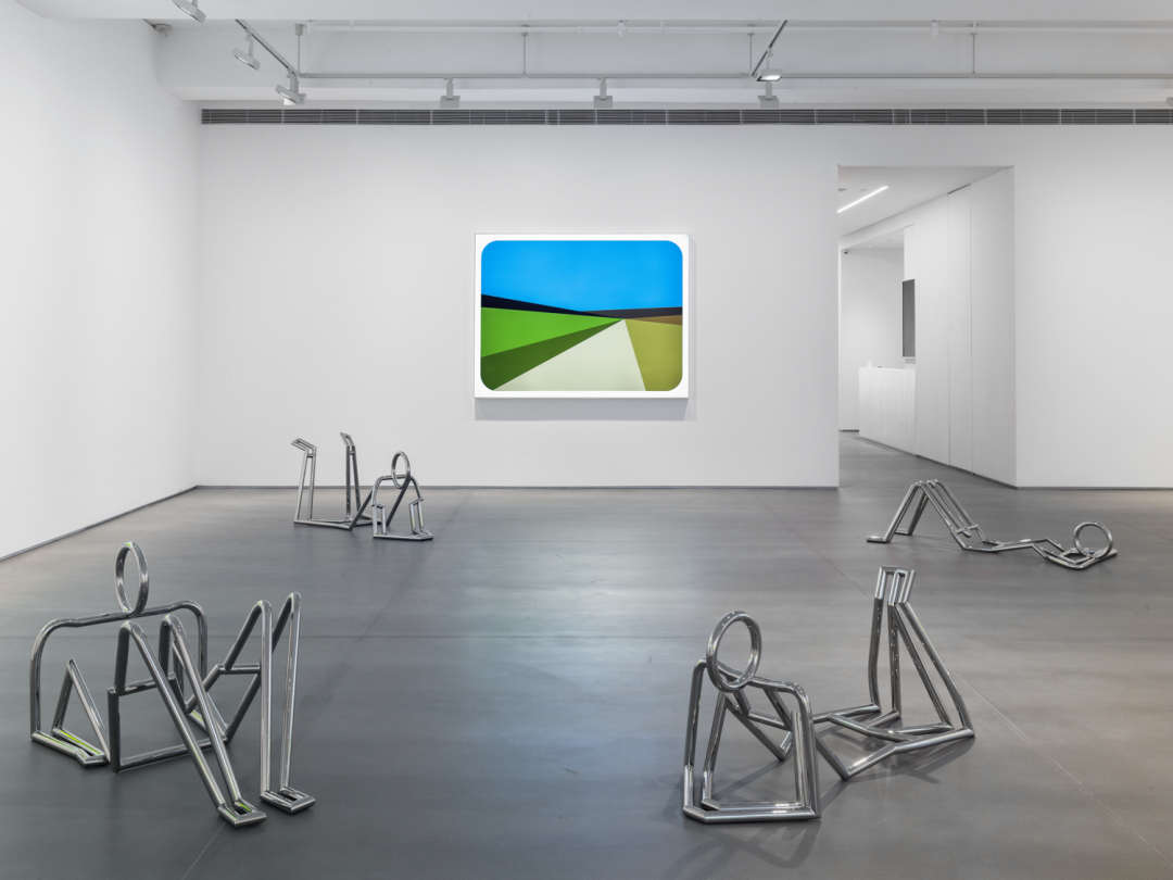 奥培实践中跨时代的时间线索和普世的主题常令人认为其作品是等级制度的扁平化,是线条和形态的简略化,和手法和材料的纯粹化。然而,这些新作也具有很强的立体性、动画性和复杂性,仿佛游走于不同的领域,介于图像、客体、科技、标识、绘画和雕像之间。展出的作品并不是简单地体现了掠过车窗或在屏幕上的事物,而是回溯了几个世纪以来代表人类创造力的经典原型,包括第一个呈侧躺姿态的人像、第一个风景画家,和描绘人体处于运动状态的最初尝试。