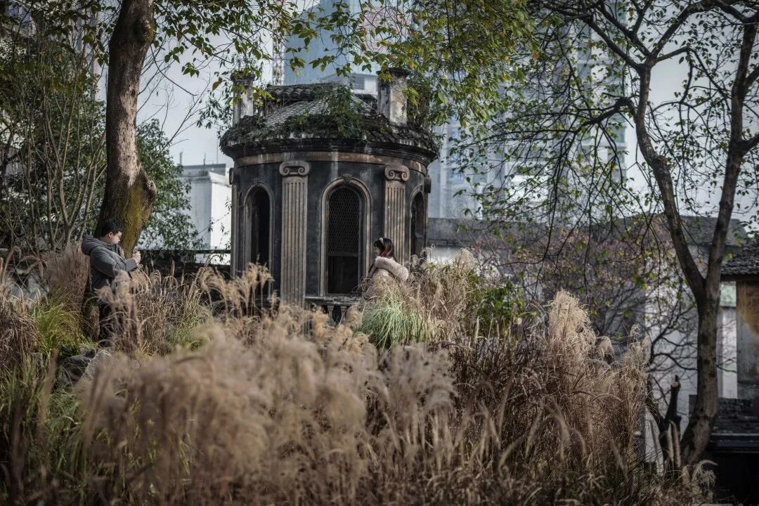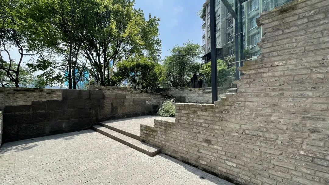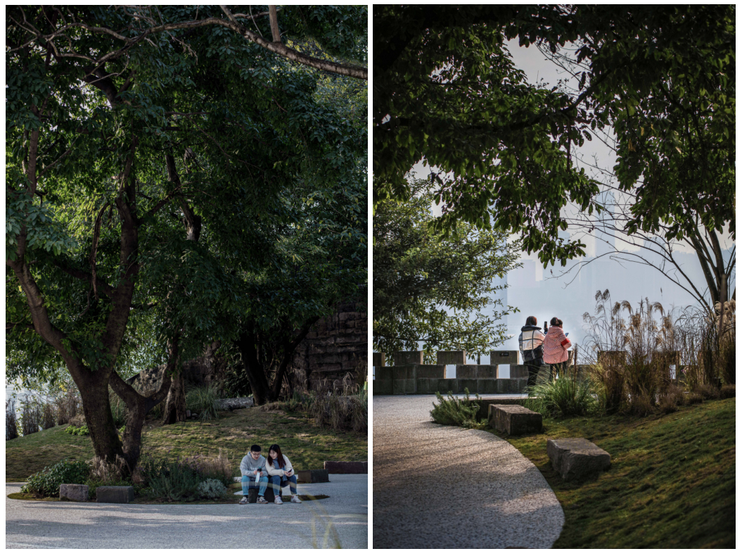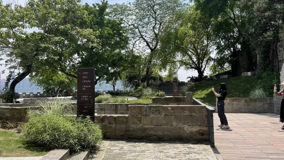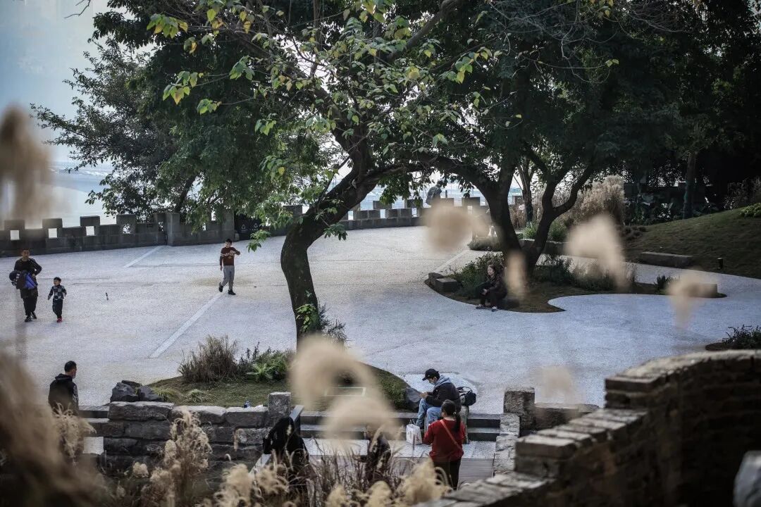 如今原有建筑主体已消失,将荒野花园打造成为这座城市的观景阳台,站在公园边,滔滔长江、城市的轮廓线映入眼帘。