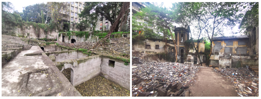 曾经精美的仁爱堂,仅剩下一片废墟,