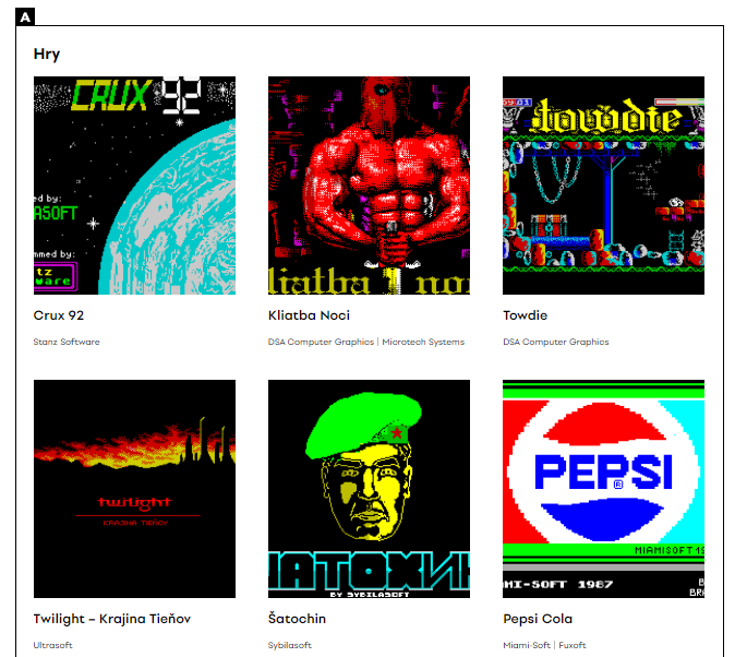 除了以上十款游戏,在斯洛伐克设计博物馆的网站<https://scd.sk/hry/>上也开展了线上项目<výstava 8-bit>,这个项目展示了包括以上游戏在内的上世纪 80 至 90 年代捷克斯洛伐克游戏。