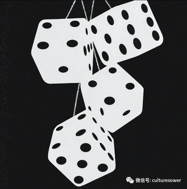 White Black Fuzzy Dice, 2017 Silkscreen with enamel inks and flocking on 2-ply museum board 61 × 61 cm