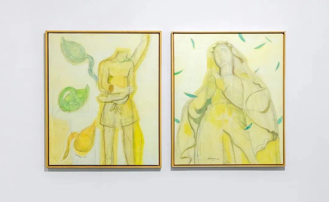 与具象绘画结缘至今,刘晟始终在寻找架上绘画再运用的种种可能。近两年,他开始关注作品是如何被运用的。“画面的张力、影响力,可能不再是画作本身,而是画作对空间、对所在的场域产生的关系。”《线叙》《变奏》等作品,都是对这一命题的探索。