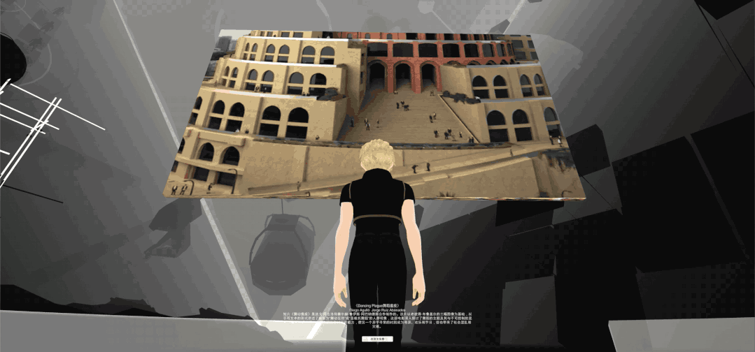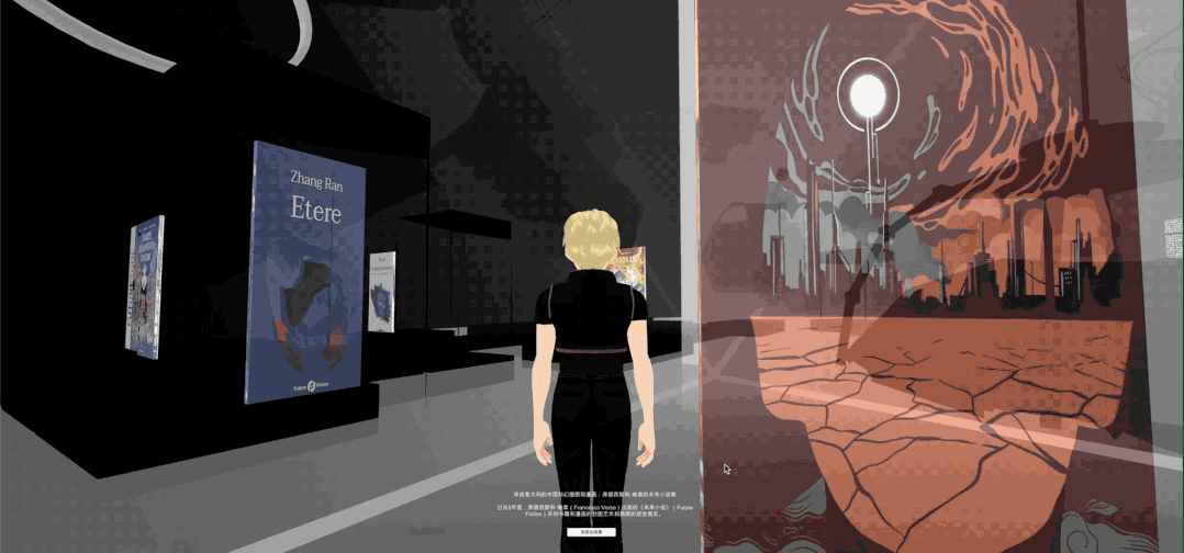 顺着左侧光标即可进入DocuMETA元宇宙科幻文献展展厅,右侧光标进入论坛区。