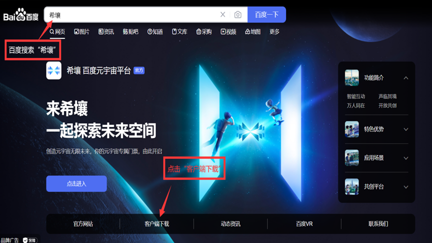 本次元宇宙科幻大会将在百度希壤平台举办。在您的浏览器中使用百度搜索引擎直接搜索“希壤”,或在应用商店(手机端)中搜索“希壤”并下载安装。