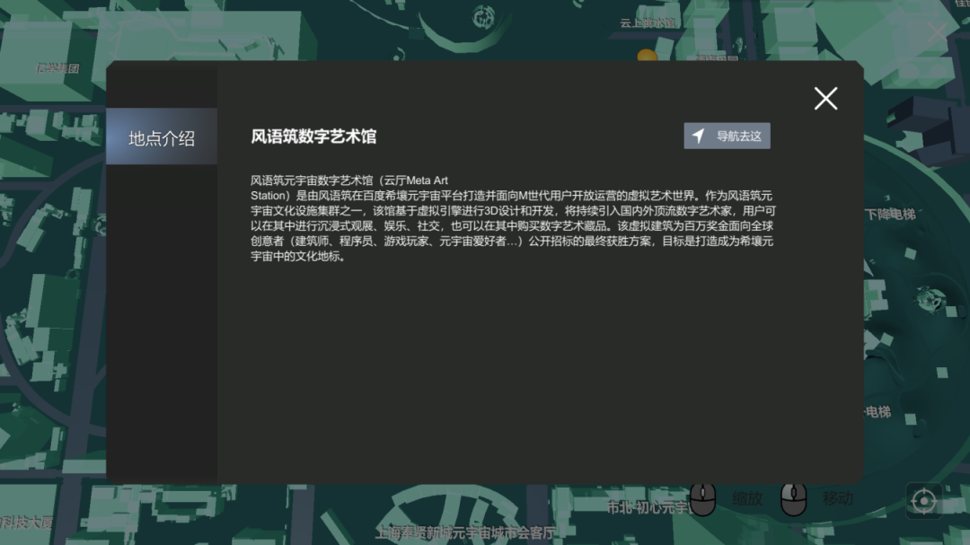 操作人物进行移动,即可开启精彩的未知之旅。点击左上角地图,选择“风语筑数字艺术馆”,即可导航前往会场。