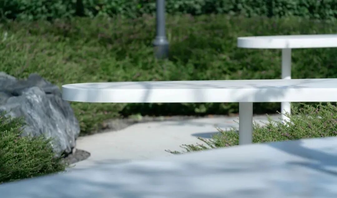 一个人是独赏,几个人则是相聚,树荫下单个、多个或半包围的长条座凳组成了不同的空间氛围,邀请不同的人群前来发发呆,聊聊天,晒晒太阳。